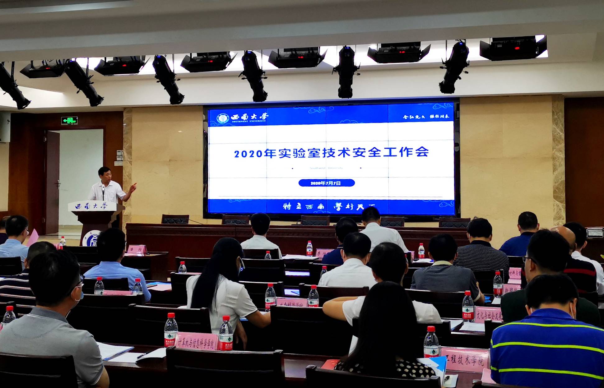 为全面贯彻习近平总书记总体国家安全观,落实教育部“安全生产月”“安全生产万里行”“安全专项整治三年行动”等工作要求,确保常态化疫情防控中实验室运行安全,7月7日下午,学校在第二学生活动中心召开2020年实验室技术安全工作会。党委书记李旭锋、副书记潘洵、副校长赵国华出席会议,实验室技术安全工作领导小组成员单位负责人、各二级单位党政负责人、荣昌校区管委会参加会议,会议由潘洵主持。