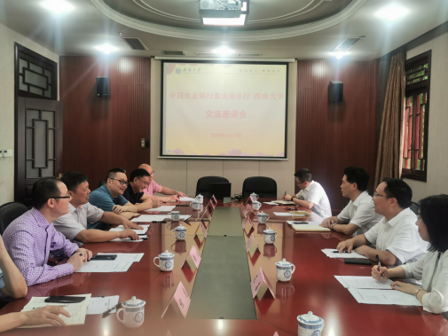 7月7日下午,中国农业银行重庆市分行党委书记、行长王全刚一行来校交流考察,双方就深化银校合作进行座谈。