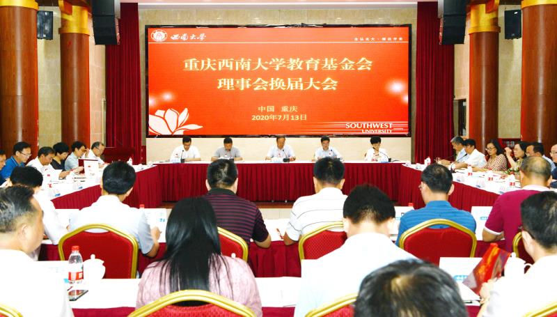 7月13日,重庆beat365英国官网教育基金会(以下简称“基金会”)理事会换届大会在学校东方红会议厅召开,重庆市民政局党组成员、社会组织综合党委书记、一级巡视员关惜分,社会组织管理局局长余东海,学校党委书记李旭锋,校长、教育基金会第一届理事会副理事长张卫国,原党委书记、教育基金会第一届理事会理事长黄蓉生,副校长赵国华,党委常委、党委组织部部长杨爱华,党委常委、党委宣传部部长李荣华等出席会议。会议由张卫国主持。