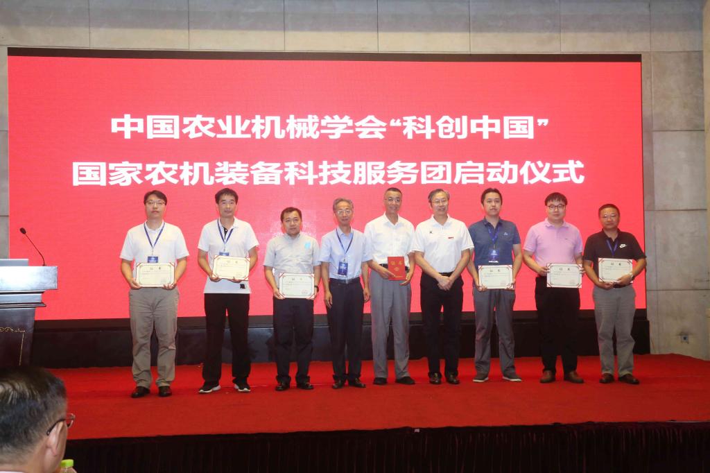 会上进行了中国农业机械学会“科创中国”国家农机装备科技服务团成立启动仪式,仪式由中国农业机械学会副理事长杨洲主持。杨洲介绍科技服务团的推动及筹建情况,宣读国家农机装备科技服务团首批成员名单,并现场颁发专家证书。
