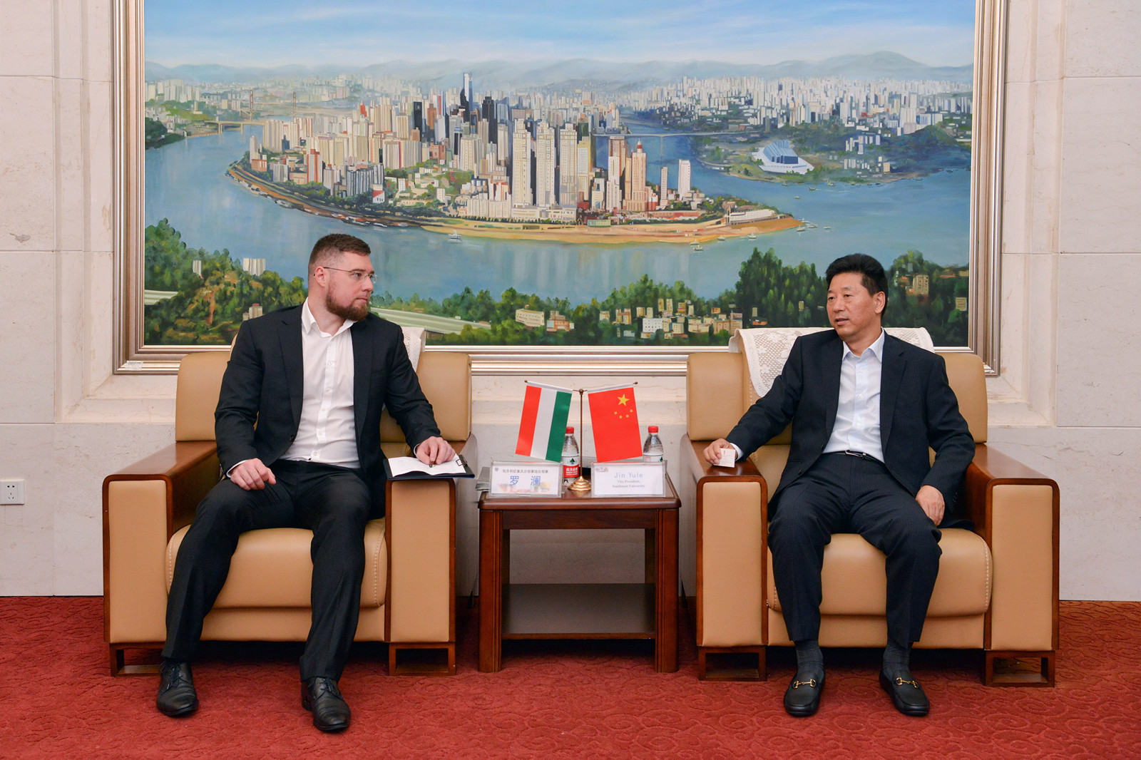 靳玉乐介绍了学校历史沿革、学科特色和办学规模等情况。他指出,学校坚持对外开放合作战略,积极响应“一带一路”倡议,高度重视与匈牙利等中东欧国家的教育交流与合作。近年来,学校与匈牙利农业创新中心中央食品研究所合作成立了“中匈食品科学合作研究中心”,与佩奇大学、匈中双语学校等建立合作关系,取得丰硕成果。希望总领事为学校与匈牙利的教育合作交流创造更多机遇,搭建更好的平台。