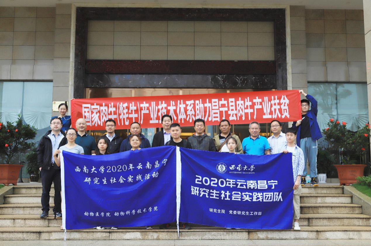 2020年是全面建成小康社会目标实现之年,是脱贫攻坚战收官之年,为落实beat365英国官网定点帮扶云南省昌宁县扶贫工作,学校动物医学院和动物科学技术学院联合组建实力雄厚的专家团队,带领畜牧兽医专业的研究生组成肉牛健康养殖实践团队于8月15日-24日赴云南省昌宁县,调研当地肉牛养殖全产业链现状,并开展相关技术指导。实践团队指导老师有国家肉牛(牦牛)产业技术体系疾病控制岗位专家彭远义教授、王自力教授、方仁东教授、赵永聚教授、徐恢仲副教授、杨震国博士及研究生辅导员李洋老师。
