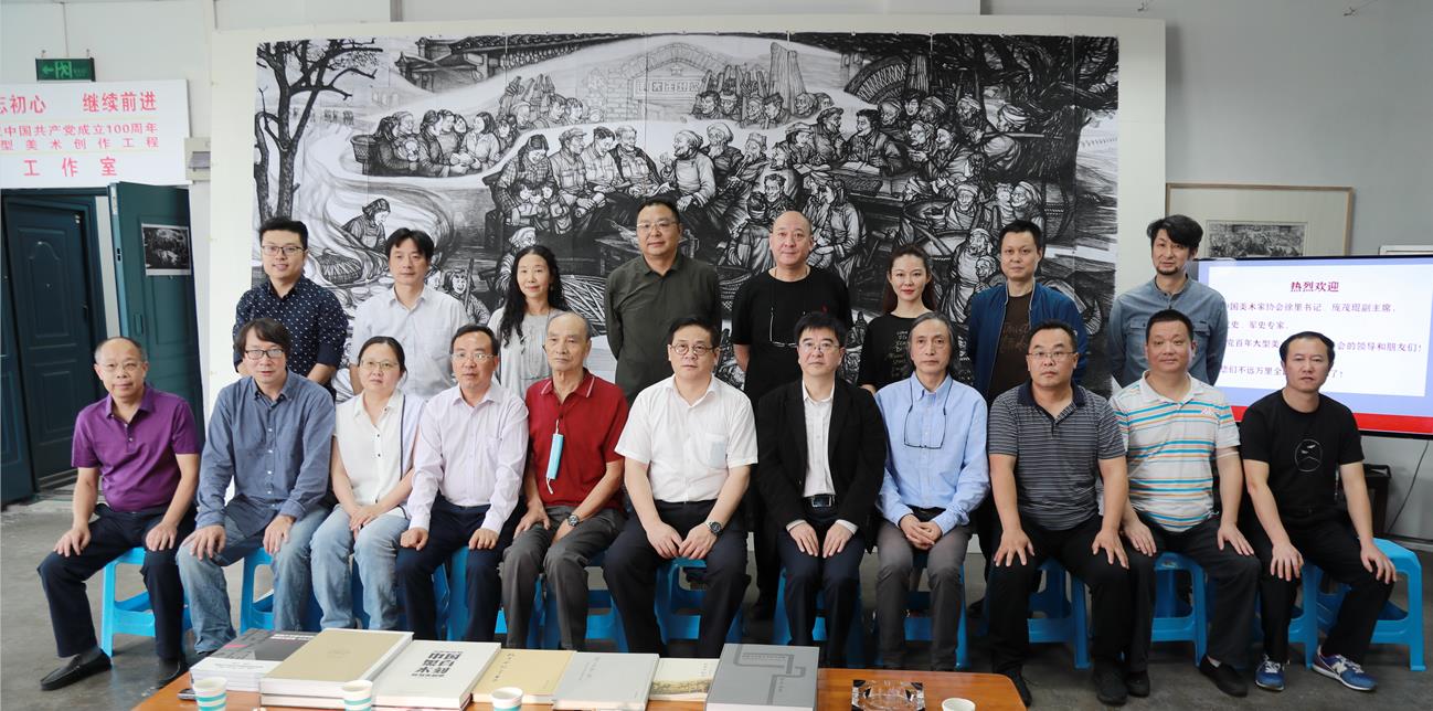 为迎接中国共产党成立100周年,中央宣传部、中国文联、财政部、文化和旅游部联合主办,中国美术家协会承办的“不忘初心继续前进——庆祝中国共产党成立100周年大型美术创作工程”,已进入巡视审稿阶段。9月14日,建党百年大型美术创作工程组委会领导及专家组成员、中国美术家协会分党组书记、驻会副主席徐里,中国美协副主席、重庆美协主席、重庆美术馆馆长庞茂琨,党史军史专家单劲松、赵宇、陈伙成,及中国文联美术艺术中心、中国美术家协会有关负责人和工作人员一行,来到学校戴政生教授木刻创作室进行巡视审稿工作,学校党委书记李旭锋、校长张卫国分别会见来校专家。