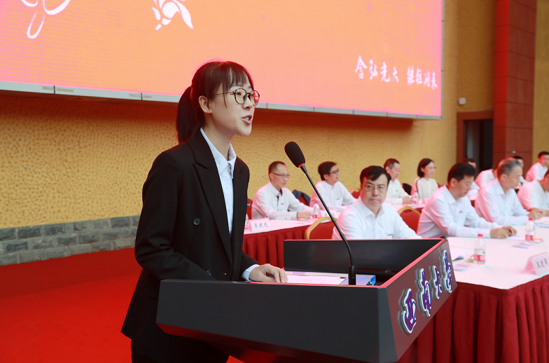 柑桔研究所博士研究生吴佳星作为研究生代表向新生提出真挚建议:要将知识与实践结合,将研究成果应用到实践中去,这样才能实现自我价值。