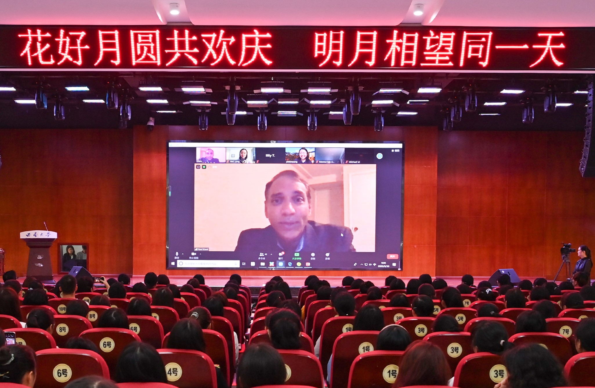 9月30日上午(美国当地时间9月29日晚),中国传统节日中秋节来临之际,由学校国际合作与交流处和美国韦伯州立大学国际部共同策划实施的两校师生“花好月圆共欢庆,明月相望同一天”线上中秋联谊会成功举办。学校副校长王进军,美国韦伯州立大学副校长拉维•库儒维,及双方师生代表约300人跨越千里,“云上”相聚,共度佳节,共叙友谊。