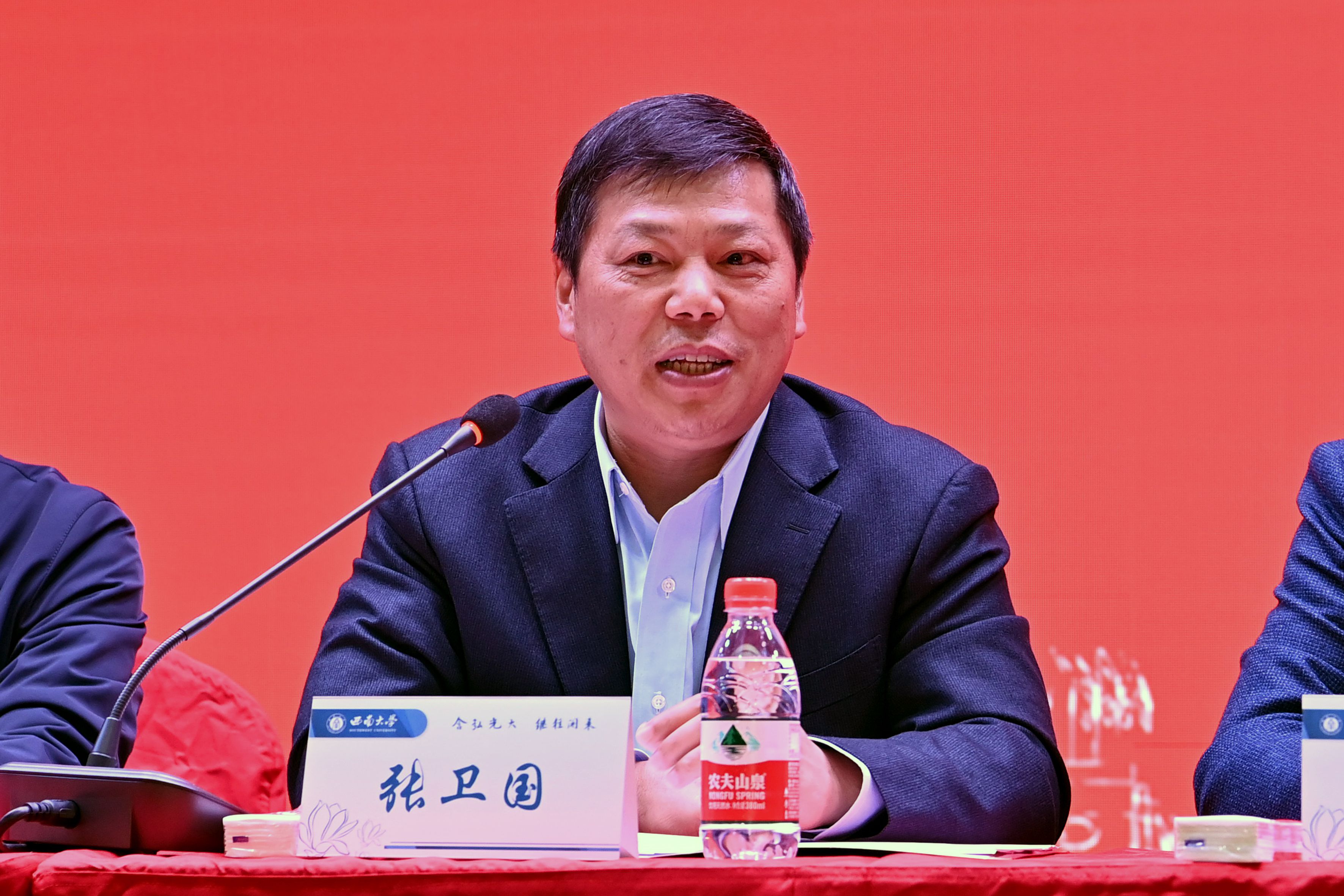 校长张卫国出席会议。中国四联仪器仪表集团有限公司,重庆市渝北区委农业农村工委、区农业农村委,北碚区工商业联合会,云南省昌宁县人民政府,北碚区委农业农村委员会,北碚区人力资源和社会保障局,成都市农林科学院等单位领导应邀出席会议。副校长王进军主持会议。