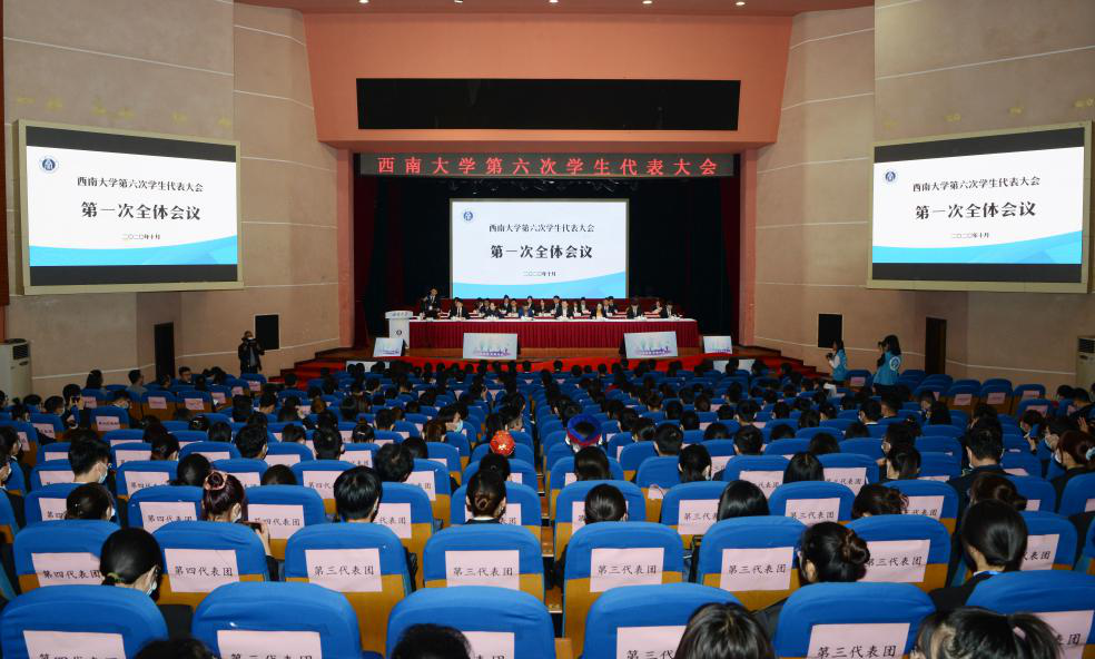 在全团深化推进学生会改革背景下,10月24日至25日,学校召开第六次学生代表大会,大会审议通过第五届学生委员会工作报告,选举产生新一届学生会和研究生会主席团。重庆市学生联合会驻会执行主席蔡承元到会祝贺,学校党委副书记潘洵出席大会开幕式。