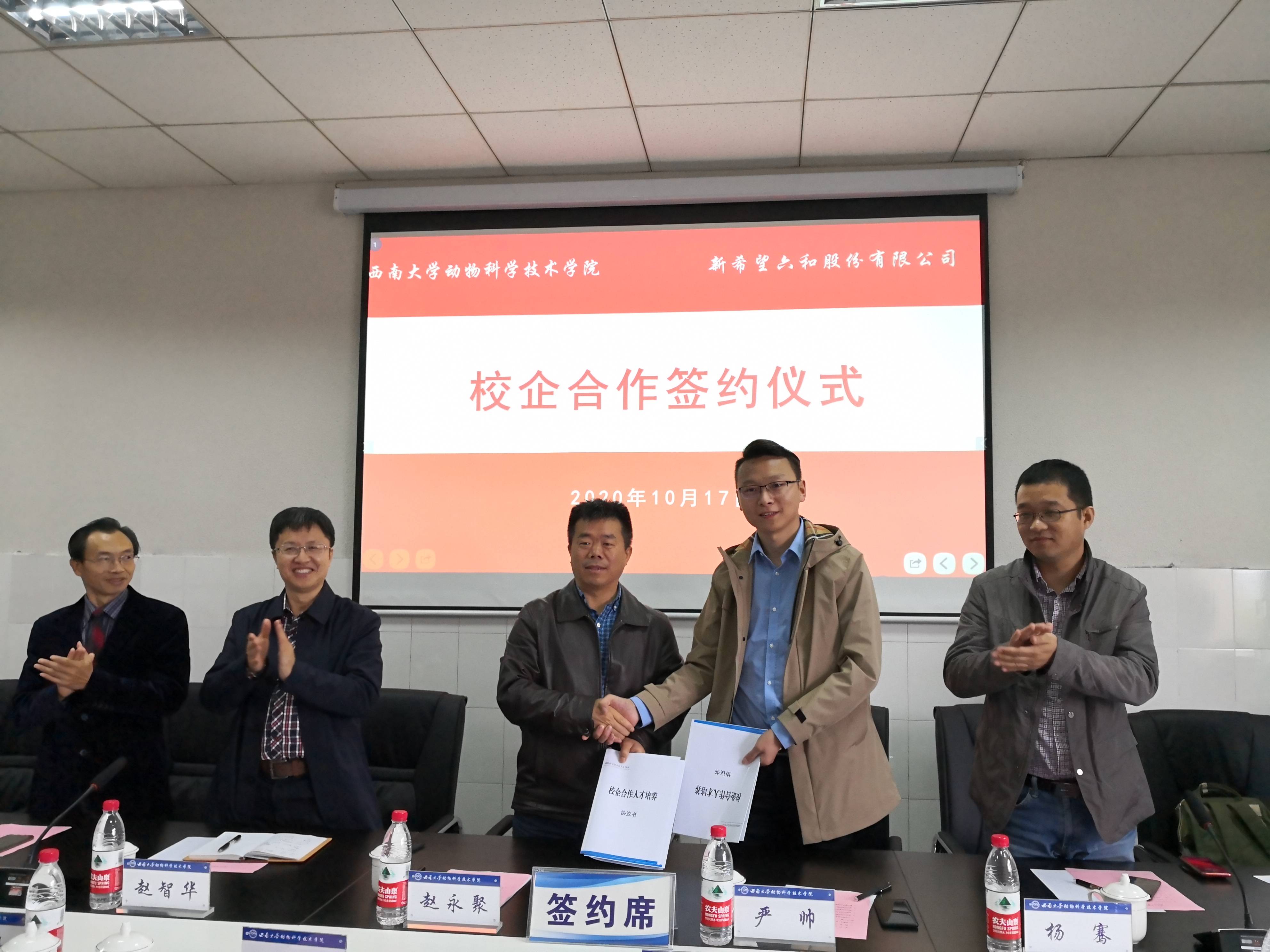 为加强新农科建设、探索现代畜牧业人才培养新模式、促进产学研深度融合发展,10月17日、24日,动物科学技术学院先后与北京沃德辰龙生物科技股份有限公司、新希望六和股份有限公司、华裕农业科技有限公司签署了校企战略合作协议。动物科学技术学院相关负责人、专家教授等参加签约仪式。