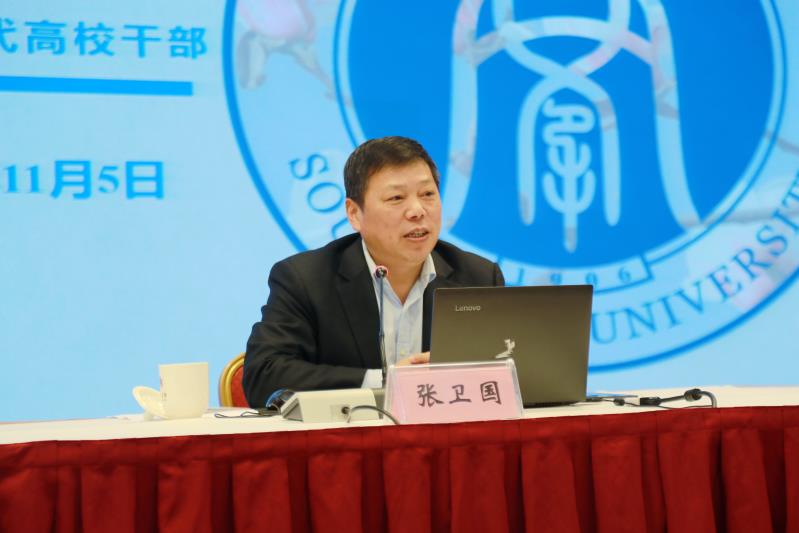 张卫国围绕学校面临的外部环境、学校近五年的发展情况以及做好下一步的工作要求等三个方面作系统详实的解读。他从国家发展形势、高等教育发展形势和区域经济社会发展形势入手,深入分析学校当前面临的重大战略机遇与严峻挑战。总结学校近五年来在人才培养、师资队伍、学科建设、科学研究、社会服务等方面取得的主要成绩,指出了在人才培养质量与社会需求、学科现状与“双一流”建设、科学研究水平与服务国家重大战略需求、师资队伍建设与建成研究型大学的目标、学校治理体制机制与深化内涵式发展的要求等方面存在的差距与不足。就如何开展好下一步工作,对全体处级干部提出了明确的要求:第一要胸怀大局,把准方向,牢记事情“为何而做”;第二要争创一流,实施六大战略,明白工作“该做什么”;第三要厘清问题,盯住发展目标,想清任务“该如何推进”;第四要刀口向内,反省自身不足,领悟本领“该如何提高”。