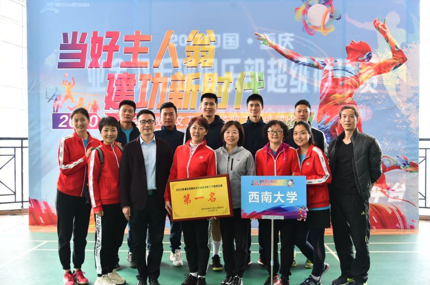 11月5日-6日, 重庆市教科文卫体工会在重庆希格玛运动休闲馆举行“当好主人翁、建功新时代”2020年教科文卫体系统职工气排球比赛,学校教职工代表队经过两天激烈角逐,斩获冠军。