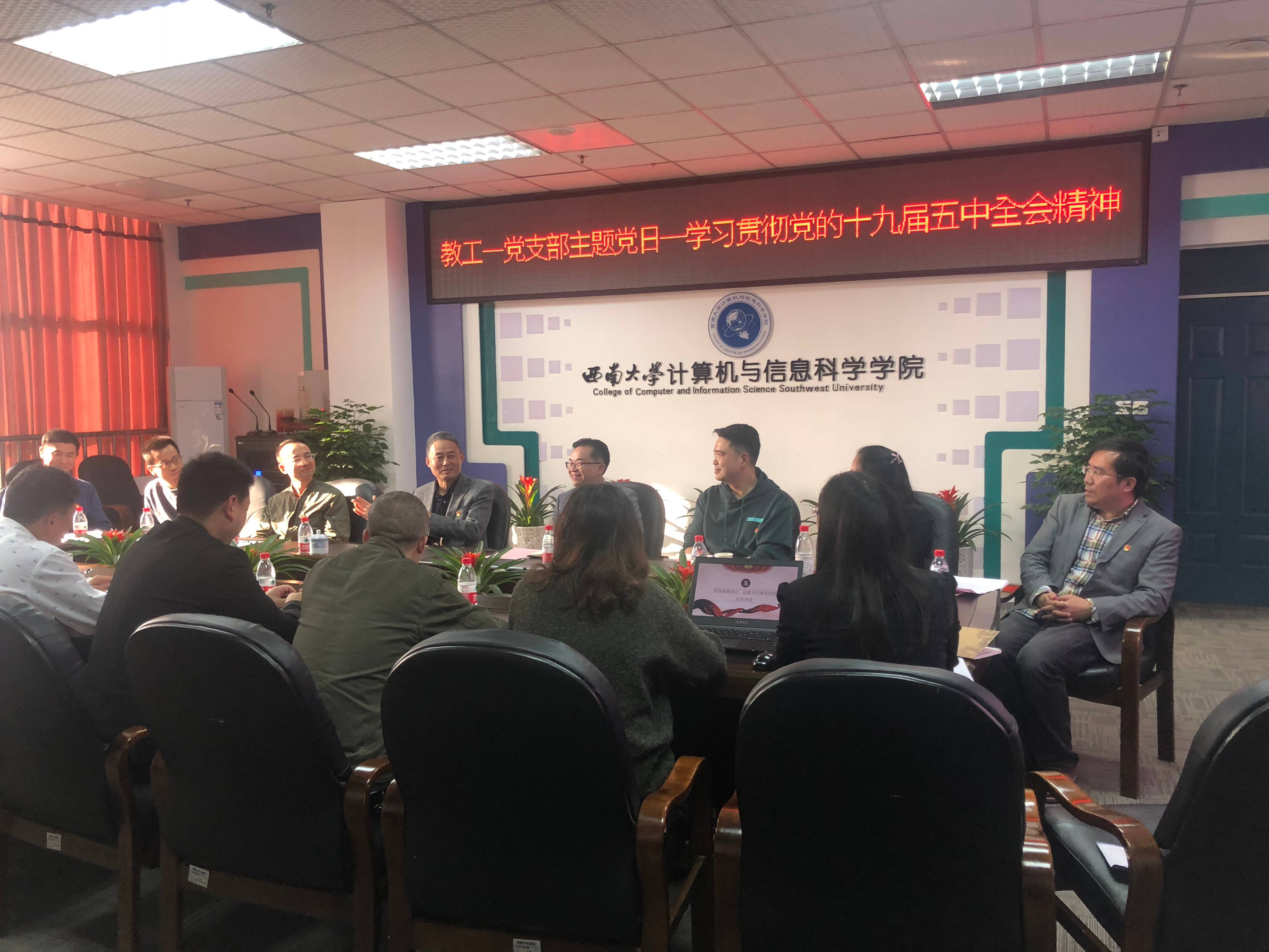 11月13日下午,学校党委副书记、纪委书记李华深入计算机与信息科学学院 软件学院教工一党支部指导开展“学习贯彻党的十九届五中全会精神”主题党日活动。活动由该党支部书记主持。