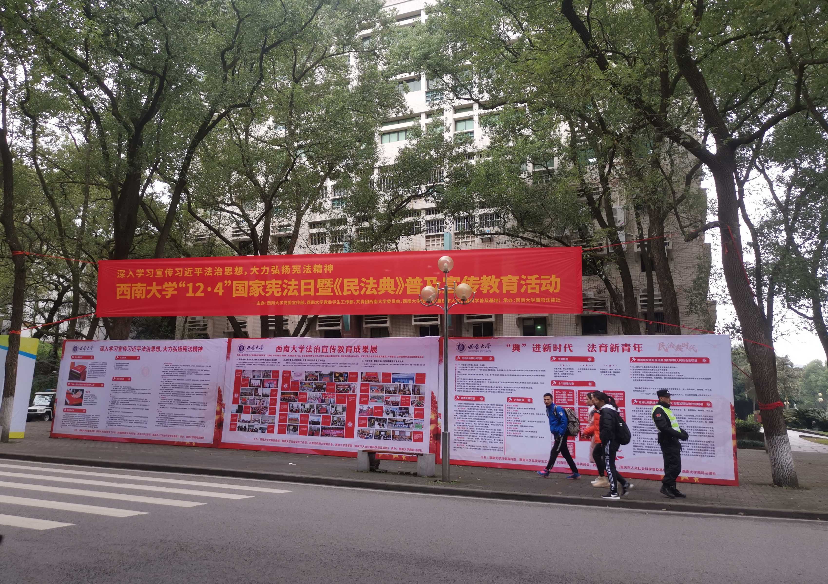 时值第七个“12·4”国家宪法日来临之际,为深入学习宣传习近平法治思想,大力弘扬宪法精神,学校开展了“12·4”国家宪法日暨《民法典》普及法治宣传教育系列活动。此次活动由党委宣传部、党委网络工作部,校团委,党委学生工作部和重庆市人文社科普及基地(学校法学院)主办,学校廌鸣法律社承办。