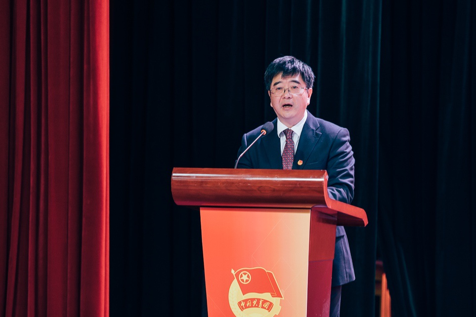 李旭锋代表学校党委作讲话,对学校第三次团代会以来团学工作所取得的成绩给予充分肯定。他指出,学校各级团学组织高举旗帜、主动作为,围绕中心、服务大局,工作呈现出特色鲜明、亮点纷呈、整体推进的良好态势,有力促进广大青年学生成长进步。实践表明,学校共青团是学校党委可以信赖的得力助手和后备军,是全校团员青年成长成才的可靠领路人。李旭锋指出,面对“两个变局”的深刻变化,展望全面建设社会主义现代化国家新征程,学校共青团和广大团员青年恰逢建功立业的难得历史机遇。希望各级团组织和广大团员青年传承先辈之志,高举团旗跟党走;回应时代之变,于变局中开新局;绽放青春之花,在追梦路上圆梦。