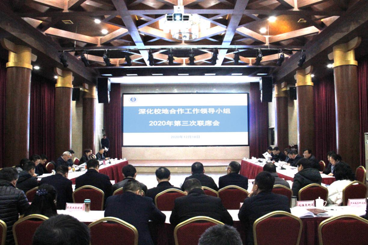 12月18日,学校与北碚区深化校地合作工作领导小组2020年第三次联席会在行署楼东方红会议厅召开。北碚区委书记周旭,区委副书记、区长何庆,区委常委、常务副区长董伦,副区长刘永、魏兴贵,学校党委书记李旭锋,校长张卫国,党委副书记潘洵,副校长崔延强、赵国华出席会议,区校双方相关部门、区相关镇街及企业负责人参加会议。赵国华主持会议。