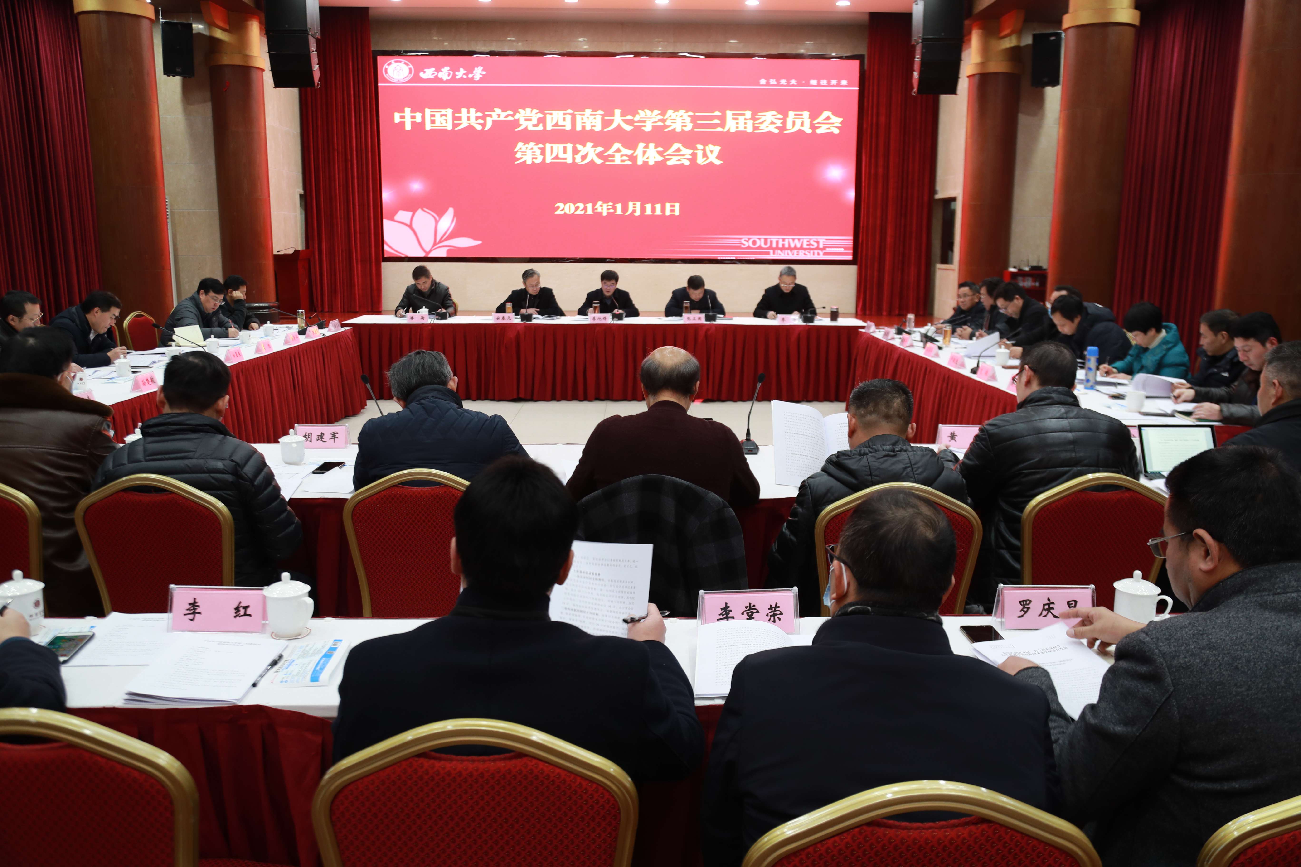 1月11日下午,中国共产党beat365英国官网第三届委员会第四次全体会议在东方红会议厅召开,学校党委常委会主持会议,党委委员出席会议,纪委委员列席会议。