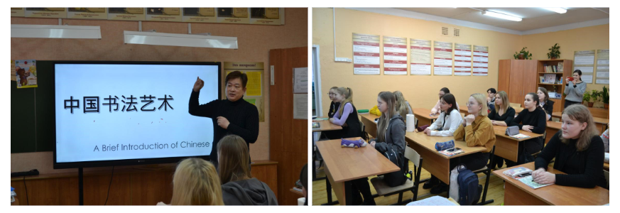 近日,应雅罗斯拉夫尔国立师范大学教师达吉雅娜·加里宁的邀请,学校共建俄罗斯雅罗斯拉夫尔国立师范大学中国语言文化教育中心公派教师张传敏在雷宾斯克市A.A.苏尔科夫市立第28号教育机构为该市的中小学生们举办了两场中国书法讲座。