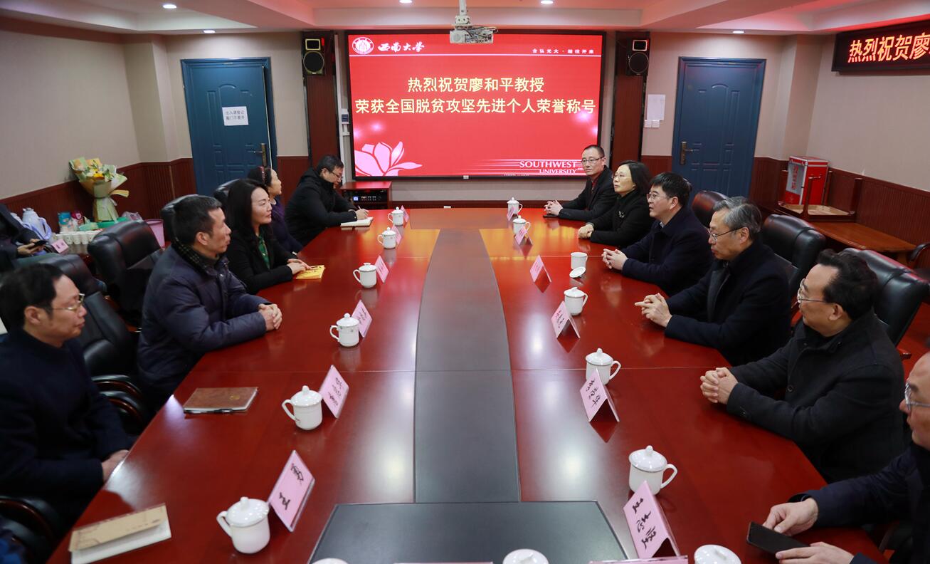 3月1日下午,学校党委书记李旭锋到地理科学学院亲切看望慰问“全国脱贫攻坚先进个人”荣誉称号获得者廖和平同志,为她送去学校党委的问候和祝福。党委副书记安春元,党政办公室,党委组织部,党委宣传部、党委网络工作部,工会,人力资源部、党委教师工作部,国内合作处等单位负责人及地理科学学院相关负责同志参加慰问。