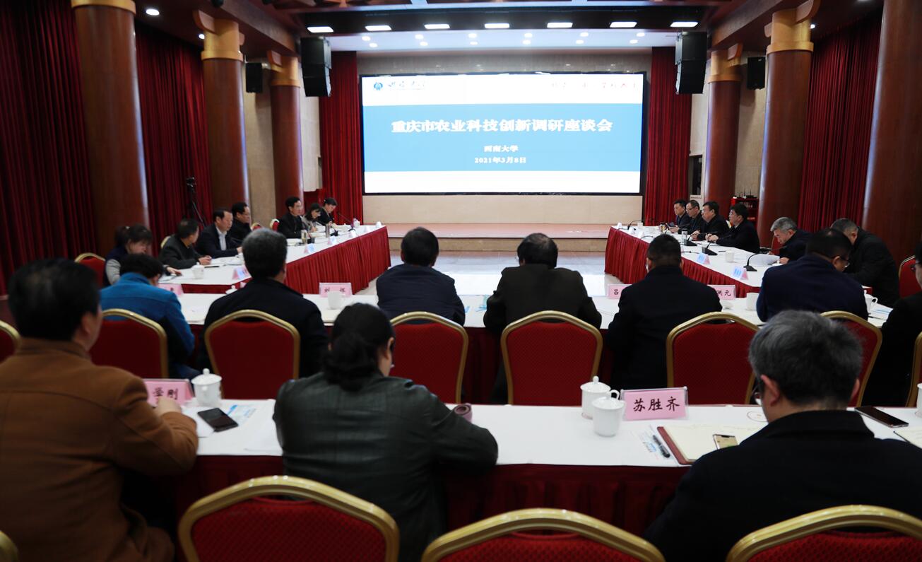 3月8日,重庆市委农业农村工委书记、市农业农村委主任路伟、农业农村工委副书记文明维及相关处室负责人到学校调研农业科技创新工作。学校党委书记李旭锋、校长张卫国出席会议,副校长王进军主持会议。学校党政办公室、发展规划与学科建设部、科学技术处、相关学院负责人及专家代表参加会议。