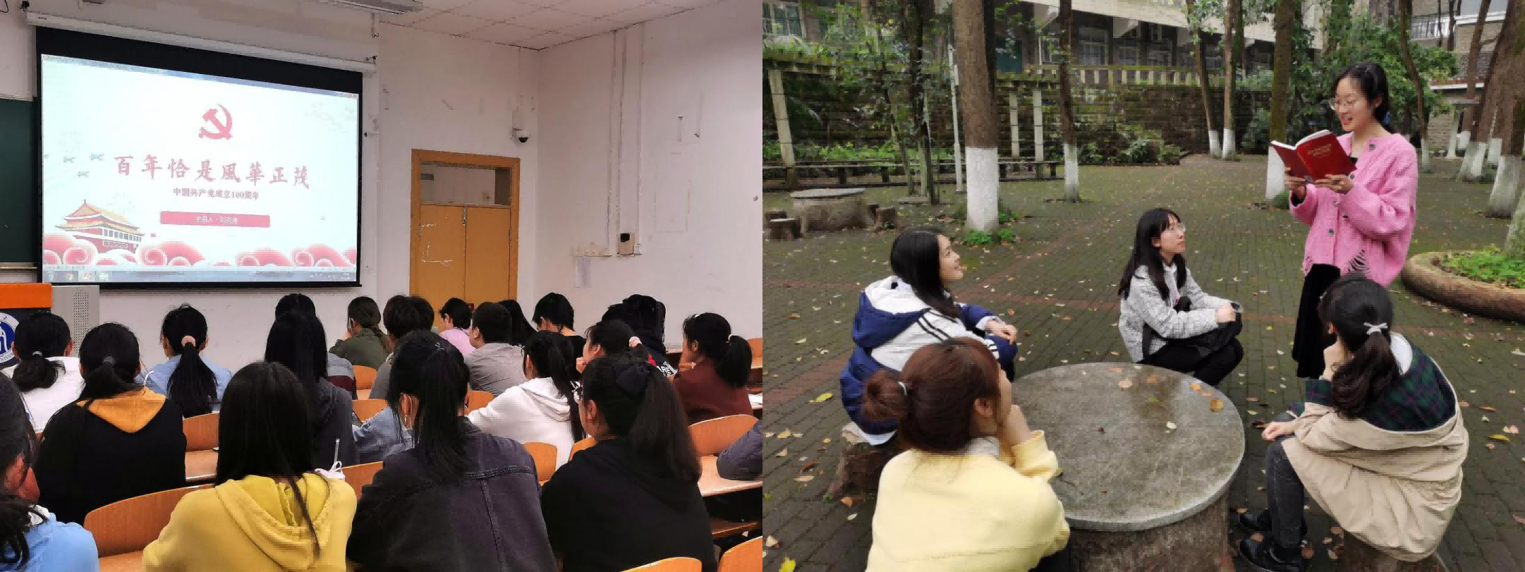 各本科生团支部也以“党史天天讲”为主题纷纷开展了内容丰富、形式多样的主题宣讲活动,掀起“学史明理、学史增信、学史崇德、学史力行”之风。各支部利用“两早一炼”“每周一学”、课前课后的班级时间,发动全体学生参与其中,讲述党史故事,分享学习感悟,并依托各团支部的线上官方平台设立了如《早安,我的党》栏目“党史我来讲”等线上接力活动等,每日发布“书党史,强心念”推送,以个人配音等形式发布主题教育视频。