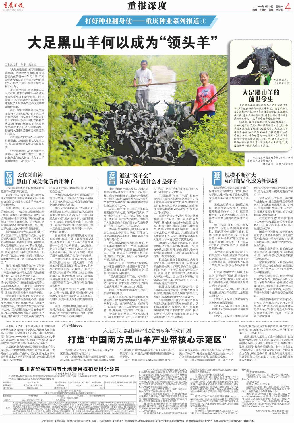 近日,《重庆日报》以“大足黑山羊何以成为‘领头羊’”为题整版报道学校大足黑山羊资源保护与利用工作,央广网等多家新闻媒体进行转载。中央电视台农业农村频道《谁知盘中餐》栏目也以“带皮的烤羊肉”全面报道大足黑山羊优良品种特性、养殖过程、羊肉品质等,进一步宣传大足黑山羊。