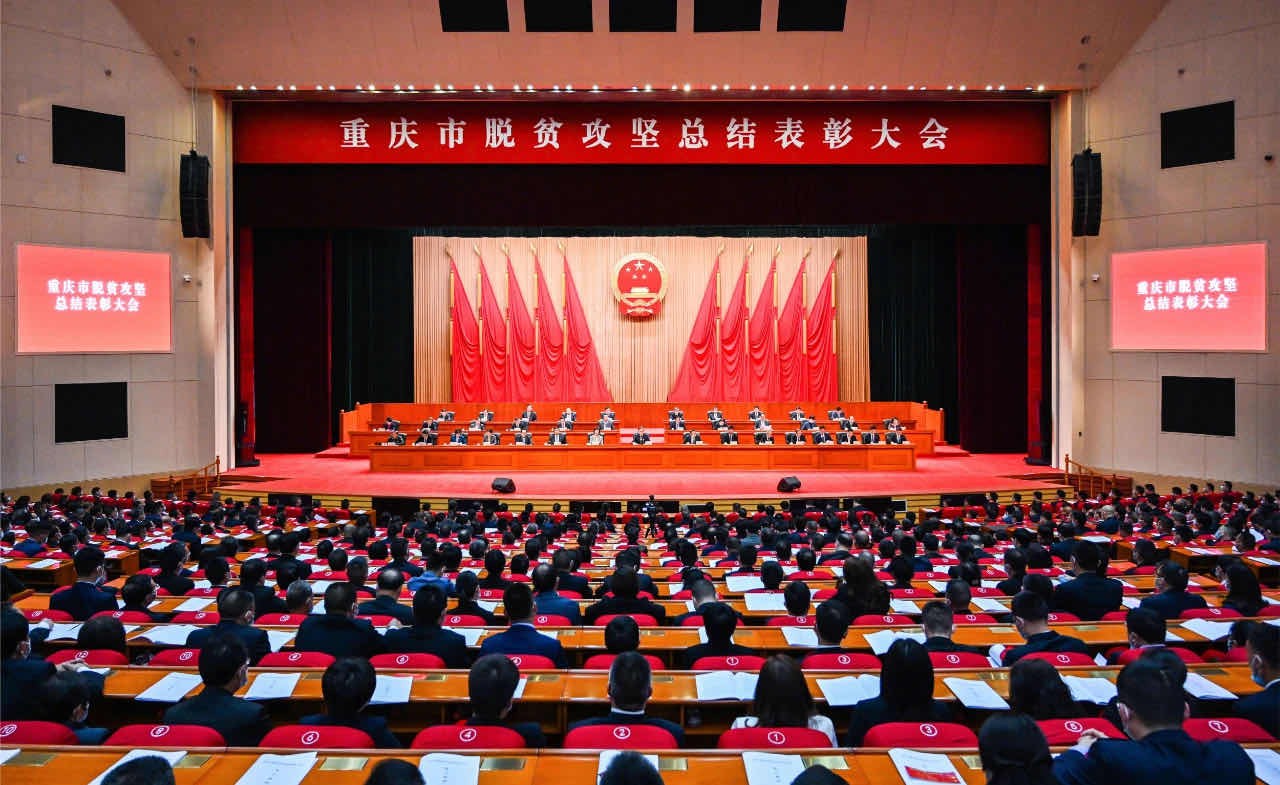 4月15日,重庆市脱贫攻坚总结表彰大会在人民大厦召开。市委书记陈敏尔出席会议并讲话,会议由市委副书记、市长唐良智主持。