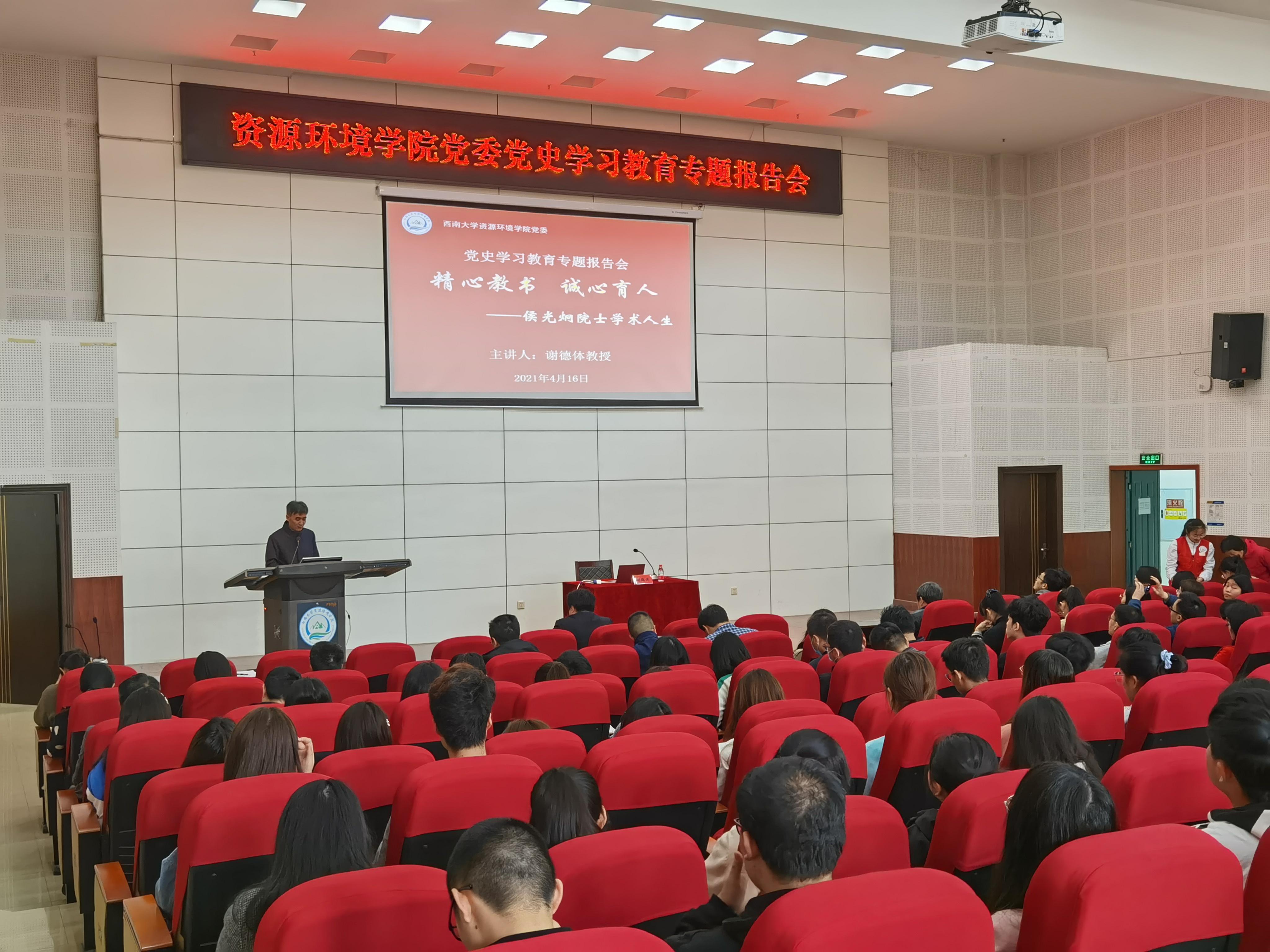4月16日下午,资源环境学院党委召开党史学习教育专题报告会,邀请全国人大代表、侯光炯院士首位博士生谢德体教授作“精心教书 诚心育人——侯光炯院士学术人生”专题报告。会议由学院党委书记杨文主持,全体青年教师、学生党员和入党积极分子参加。