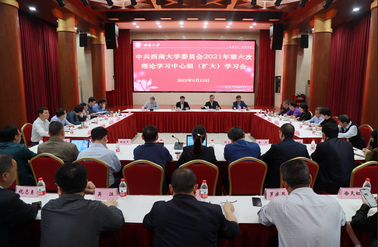 5月12日上午,学校在东方红会议厅召开2021年第六次党委理论学习中心组(扩大)学习会暨学校领导班子党史学习教育第二次专题研讨会,学习习近平总书记在广西考察、在清华大学考察时的重要讲话精神,学习《中国共产党普通高等学校基层组织工作条例》《中国共产党统一战线工作条例》,学习改革开放新时期历史。全体在校校领导、党委常委、党委委员、纪委委员参会。学校党委书记李旭锋主持会议。