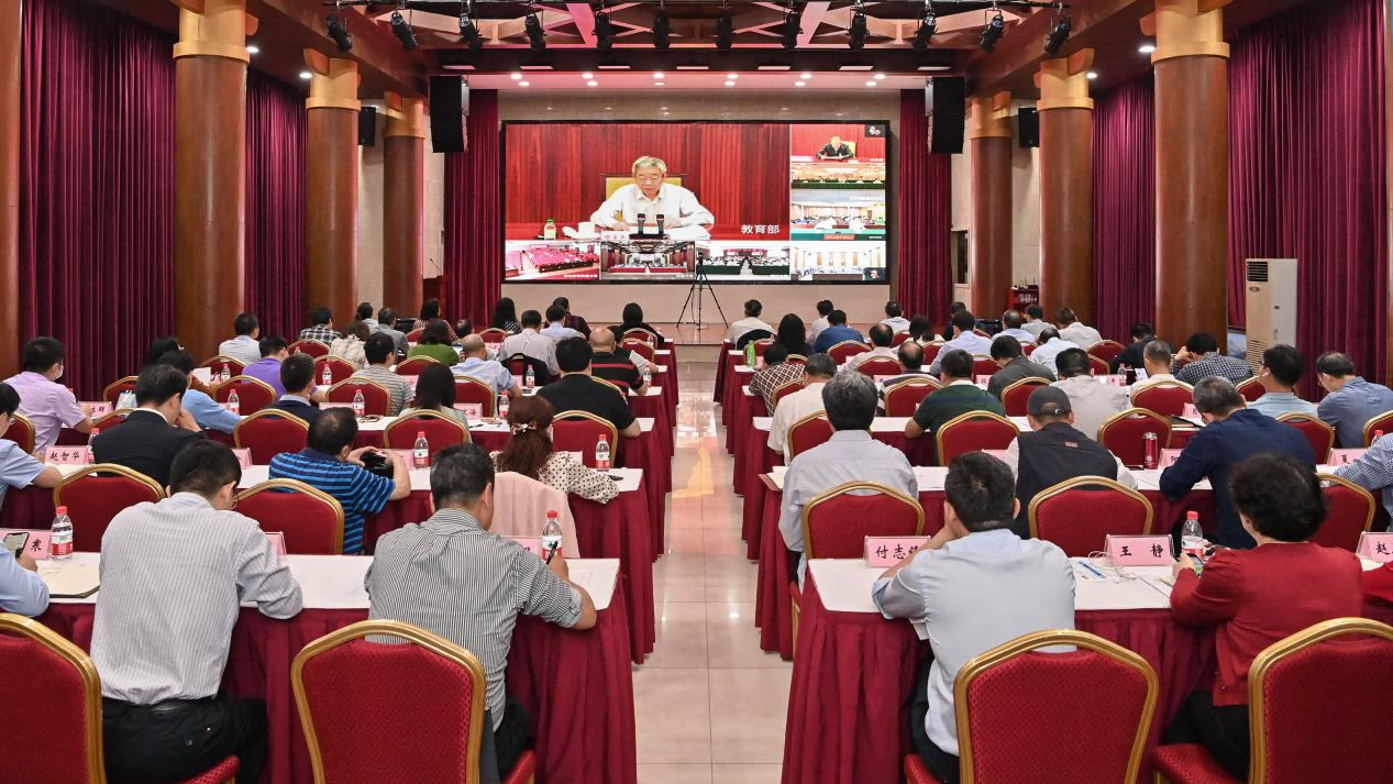与会同志首先集中观看学习教育部教师思想政治和师德师风建设经验交流暨师德专题教育启动部署视频会议。视频会议深入学习贯彻习近平总书记关于教育的重要论述和教师队伍建设的重要指示精神,系统总结教师思想政治和师德师风建设工作成效经验,狠抓教师思想政治和师德师风建设重点任务落实,部署启动师德专题教育。