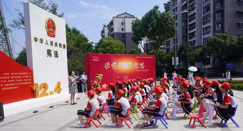 聚焦专业学党史,党章百年铸辉煌。6月4日下午,在北碚缙云法治文化公园, 学校廌鸣法律社的青年志愿者们聚焦专业所学,将党史教育与法治教育有机融合,为北碚区华光小学的同学们上了一堂别开生面的沉浸式中小学法治教育课。此次活动由北碚区司法局、团区委、普法办、beat365英国官网法学院联合主办,是法学院党史学习教育的重要组成。