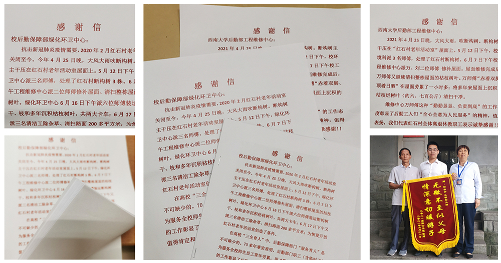 贴心细致服务让师生更温暖。主动关心援疆援藏、扶贫和到艰苦地区工作的教职工,为其家庭发放“暖心服务联系卡”,提供水电维修等服务。领导干部带队走访慰问后勤老党员、老同志、困难职工,送去组织和单位的关心。学生宿舍服务中心持续开展“宿管帮帮忙”活动,关注学生日常生活,主动照顾生病学生,煮粥熬药、洗衣缝补、收取快递……让学生感动不已;设置服务公示牌,方便学生咨询问题、反馈意见,增强与学生沟通交流的及时性、有效性。
