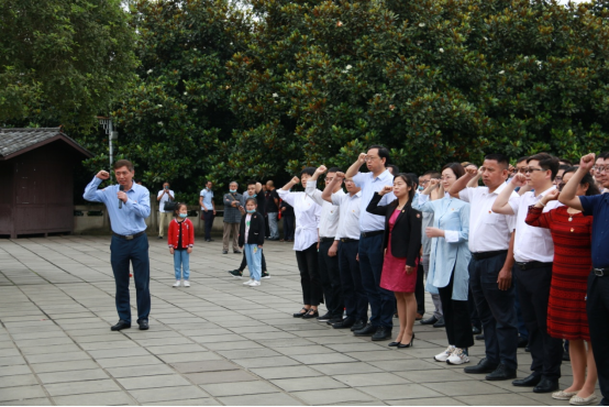 次日清晨,三校全体党员在潘洵同志和李敏同志的带领下,驱车前往朱德同志故居纪念馆开展“传承红色基因、汲取信仰力量”党史学习教育活动。全体党员在朱德同志汉白玉雕像前肃立,向朱德塑像敬献花篮,beat365英国官网历史文化学院党委书记罗庆昌、西华师范大学历史文化学院党委书记杨敏和重庆师范大学历史与社会学院党委书记王丽萍为花篮整理绶带。全体党员聆听了微型党课《朱德同志光辉人生留给我们的启示》,潘洵带领全体党员,面向鲜红的党旗,右手握拳高举,怀着无比激动的心情重温入党誓词,再次领悟入党的初心。
