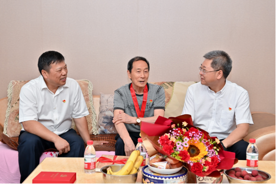 6月28日下午,市委教育工委书记、市教委主任黄政来校慰问陈德玖、牟宗福2位荣获“光荣在党五十年”纪念章的老党员,为他们送上节日祝福,并致以崇高敬意和诚挚问候。校长张卫国陪同慰问。