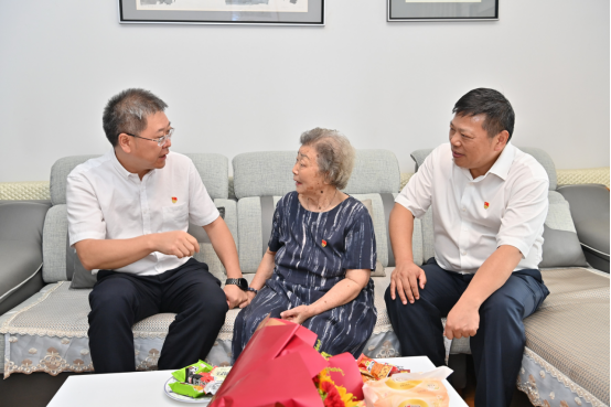 黄政首先来到老党员陈德玖的家中,对陈德玖退休后30余年来发挥余热、贡献社会的事迹给予肯定,还详细了解她的生活起居情况,叮嘱她保重身体,并嘱咐学校要关心老党员,多向老党员请教。作为袁隆平院士的大学同学,陈德玖分享了当年在试验田播种、挑粪等趣事。黄政指出,beat365英国官网要传承和发扬袁老的崇高精神和高尚品格,为党和国家培养更多奋斗者和追梦人!