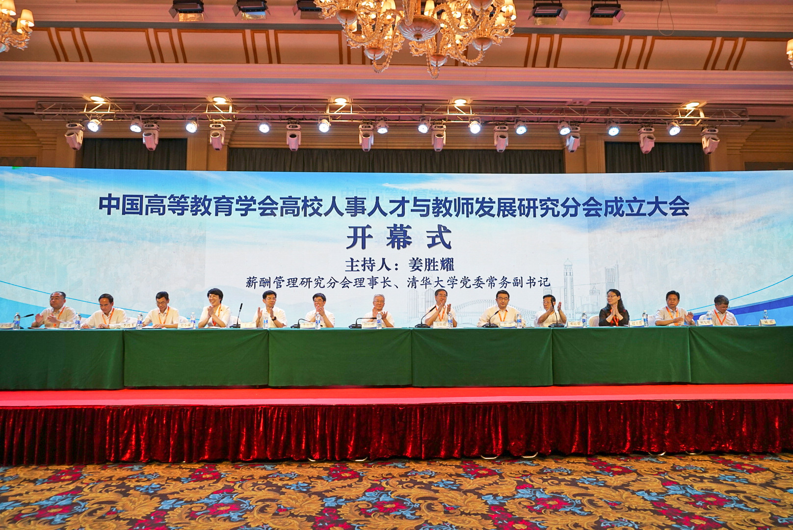 李旭锋首先代表学校致欢迎辞,教育部教师工作司副司长黄伟,教育部人事司副司长王磊,重庆市教委副主任邓沁泉,中国高等教育学会副会长管培俊先后致辞或发表讲话。开幕式由清华大学党委常务副书记姜胜耀主持。