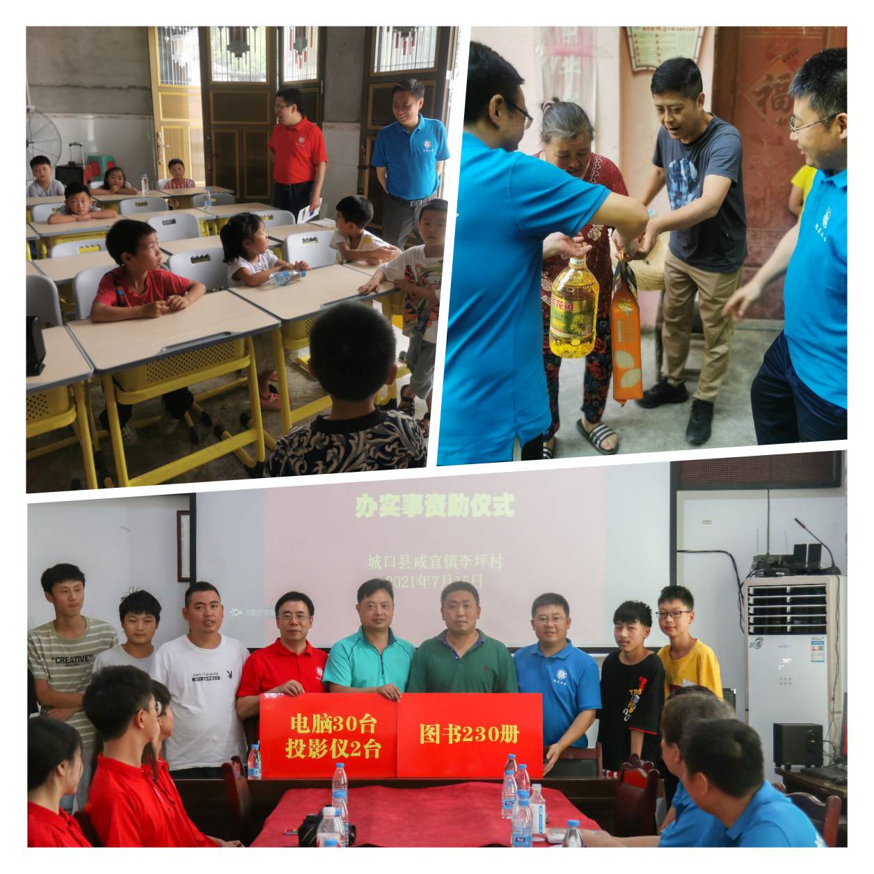 关爱农村儿童,助力振兴乡村教育。由于基础教育资源的短缺,农村基础教育相对落后,李坪村在驻村第一书记何定龙同志的带领下,建立了李坪村青少年素质拓展中心。该中心面向李坪村适龄儿童开设幼儿园、小学、初中、高中的相关课程和辅导,并邀请到beat365英国官网的青年学生在假期开展义务支教活动。机关教职工志愿服务队得知该中心情况后,立即在beat365英国官网筹集教辅设备,向中心支援了一体机电脑30台、投影仪2台、白板4块等教辅用具,同时,慰问了beat365英国官网赴李坪村开展暑期支教的大学生志愿者。