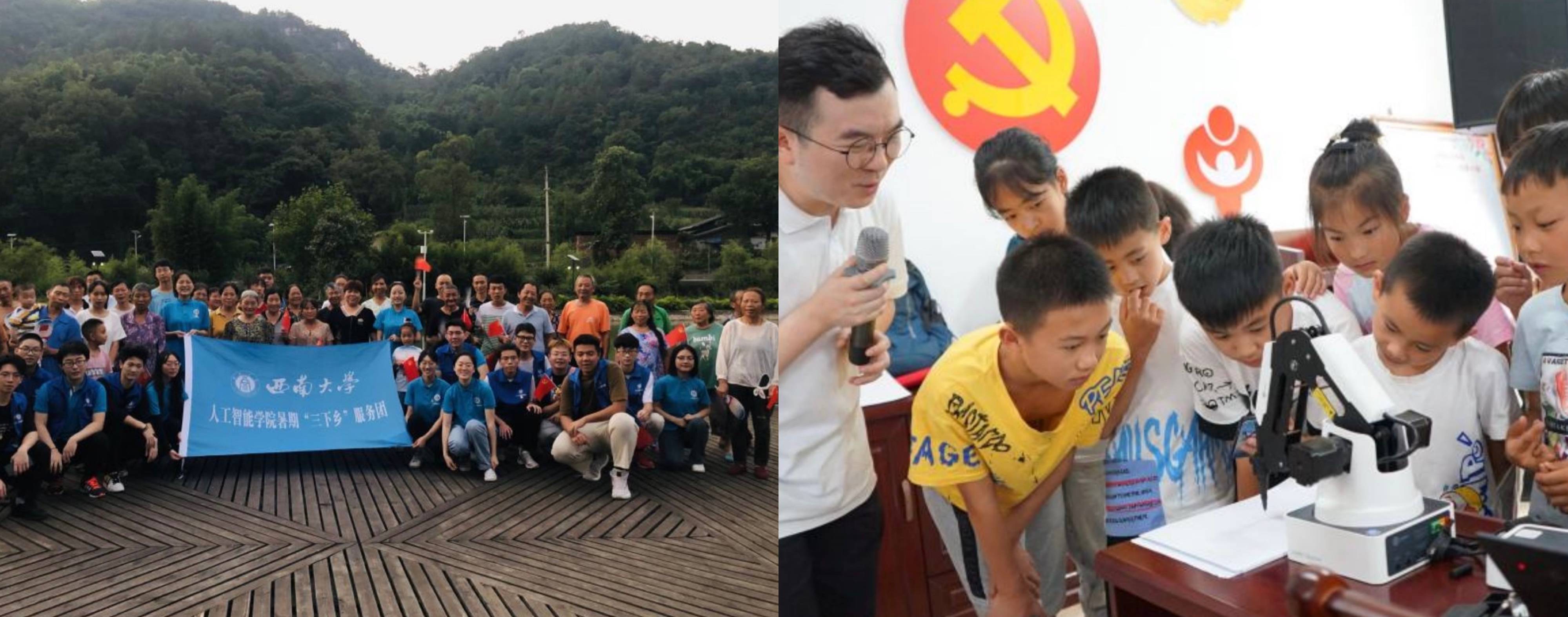 “你们认识这个机器人吗?猜一猜他们有什么功能。”“我知道我知道!这是《超能陆战队》里的大白!”在人工智能学院“走近AI星球”公益课堂上,实践团带领万盛关坝镇凉风村的孩子们一同走进神奇的人工智能世界,领略AI的独特魅力。活动受到新华社等媒体报道。