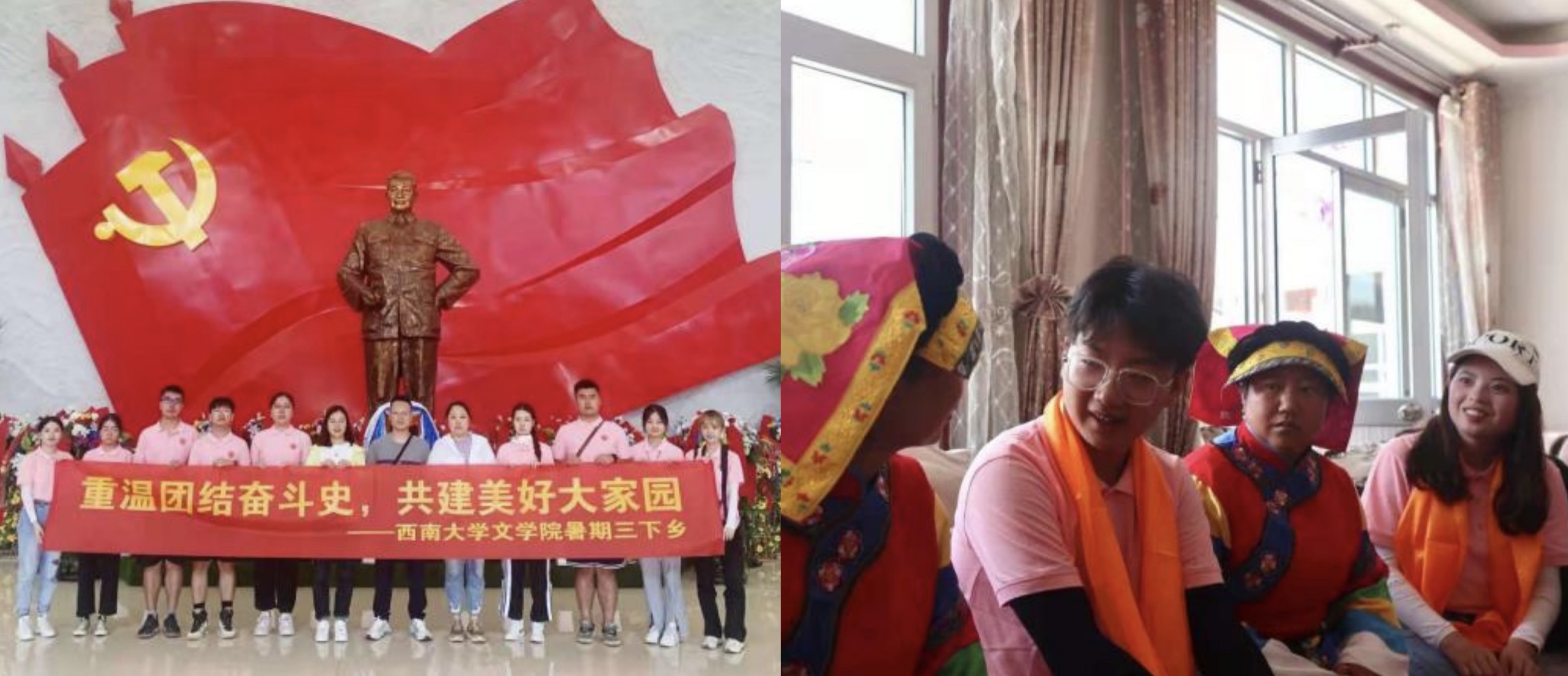 近日,文学院组织多个民族团结调研实践小组赴青海湟源县、大通县、海北藏族自治州及贵州遵义、山东青岛、重庆酉阳等地开展实践调研活动,了解党带领全国各族人民团结进步、繁荣发展的历史,从百年风华中感悟红色基因、汲取精神力量。