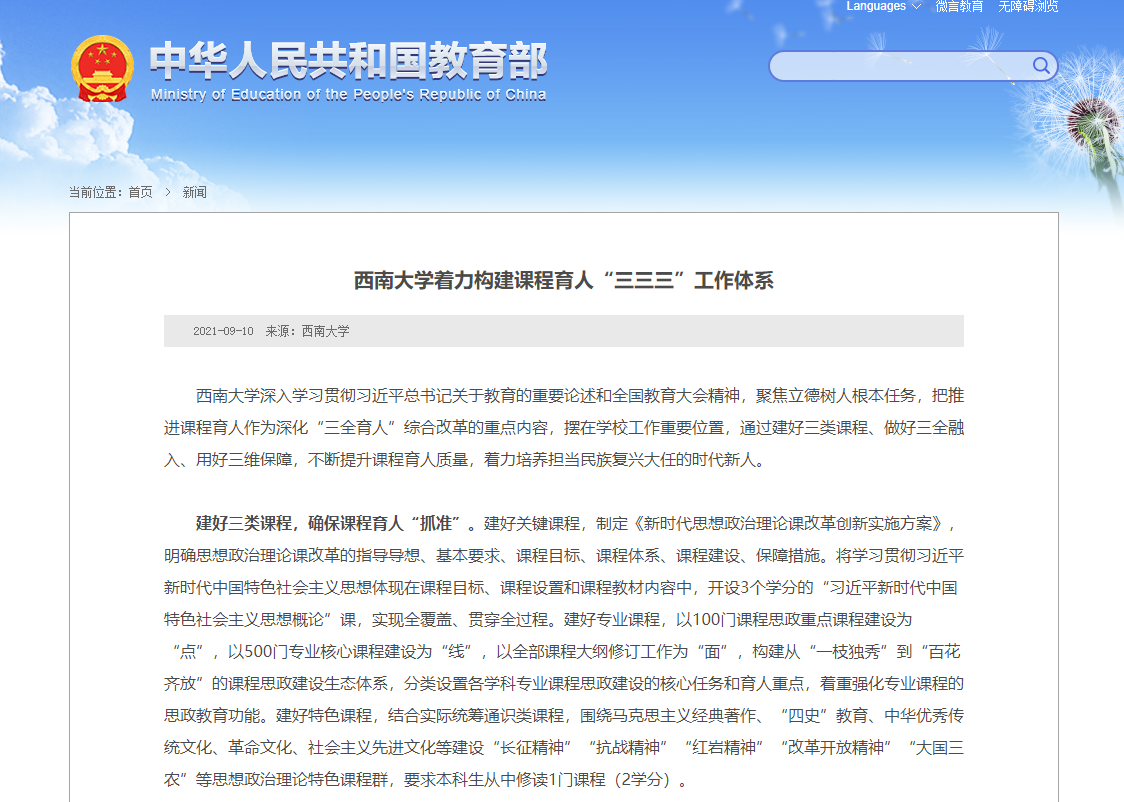 扩展阅读(报道链接):教育部官网