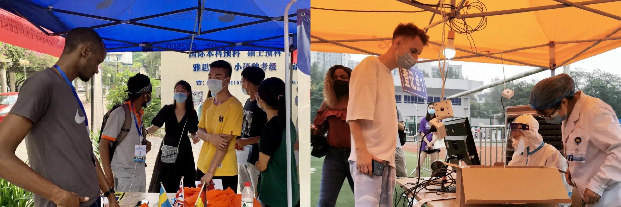 疫情没能影响同学们对新学期的热情与憧憬,也没有阻碍学校对同学们的迎接和牵挂。面对疫情,国际学院积极应对,创新国际学生新生迎新模式,通过“线上线下”同步推进的“全路径”迎新方式,让全体国际学生新生通过线上进行注册报到,并开展系列线上迎新活动。针对可以线下报到的国际学生新生,国际学院专门成立了师生志愿服务队,在入校-核酸检测-报到注册等多个环节,为每一位远道而来的新生提供便捷高效、贴心周到的帮助。