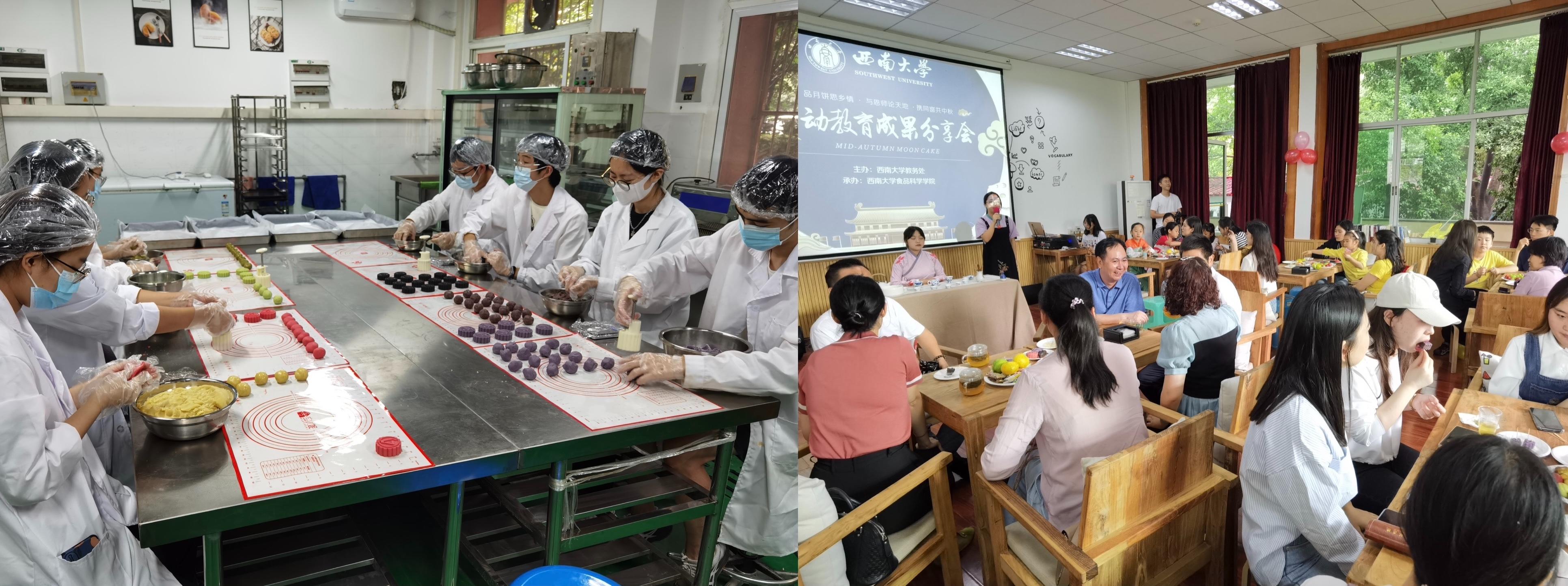 劳动教育是学校五育并举、全面发展教育体系的重要组成部分。自2020年3月中共中央 国务院印发《关于全面加强新时代大中小学劳动教育的意见》以来,学校积极推进劳动教育工作,将基于专业成长的生产劳动作为劳动教育的重要内容。学校在劳动教育中鼓励学生运用专业知识,在真实的生产环境和社会工作环境中开展真实任务的劳动生产实践,促使学生体验生产劳动过程,掌握专业劳动知识,提升专业劳动能力。值此金秋佳节,在教务处的统一指导下,食品科学学院学生将专业知识与劳动实践相结合,制作了极具特色的月饼。通过劳动教育分享会暨月饼品鉴会,让同学们在享受品尝月饼的同时,感受着中华传统文化的独特魅力。此次劳动教育分享会,学院巧妙地将劳动教育与欢度中秋相结合,依据自身特点,与烘焙俱乐部联合举办此次月饼鉴赏会。让同学们感受到劳动乐趣的同时,也领略到传统文化的宏大精彩。