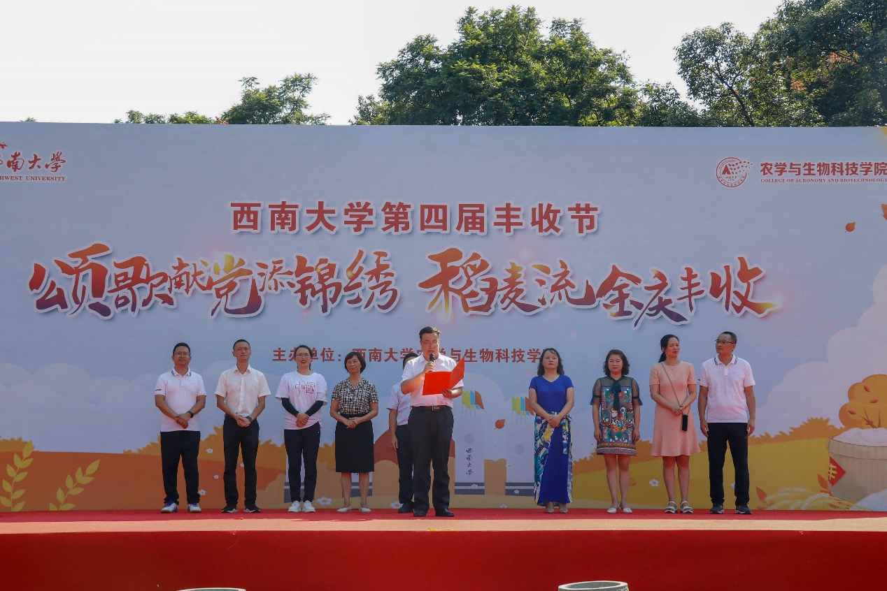 表演结束后,袁德胜致开幕词,他从国家政策趋势、重庆市农业发展状况、学校农业科技研究贡献等多角度发表讲话,袁德胜肯定beat365英国官网、农学与生物科技学院在农科专业人才培养和农业发展方面所做出的努力并宣布学校第四届丰收节开幕。