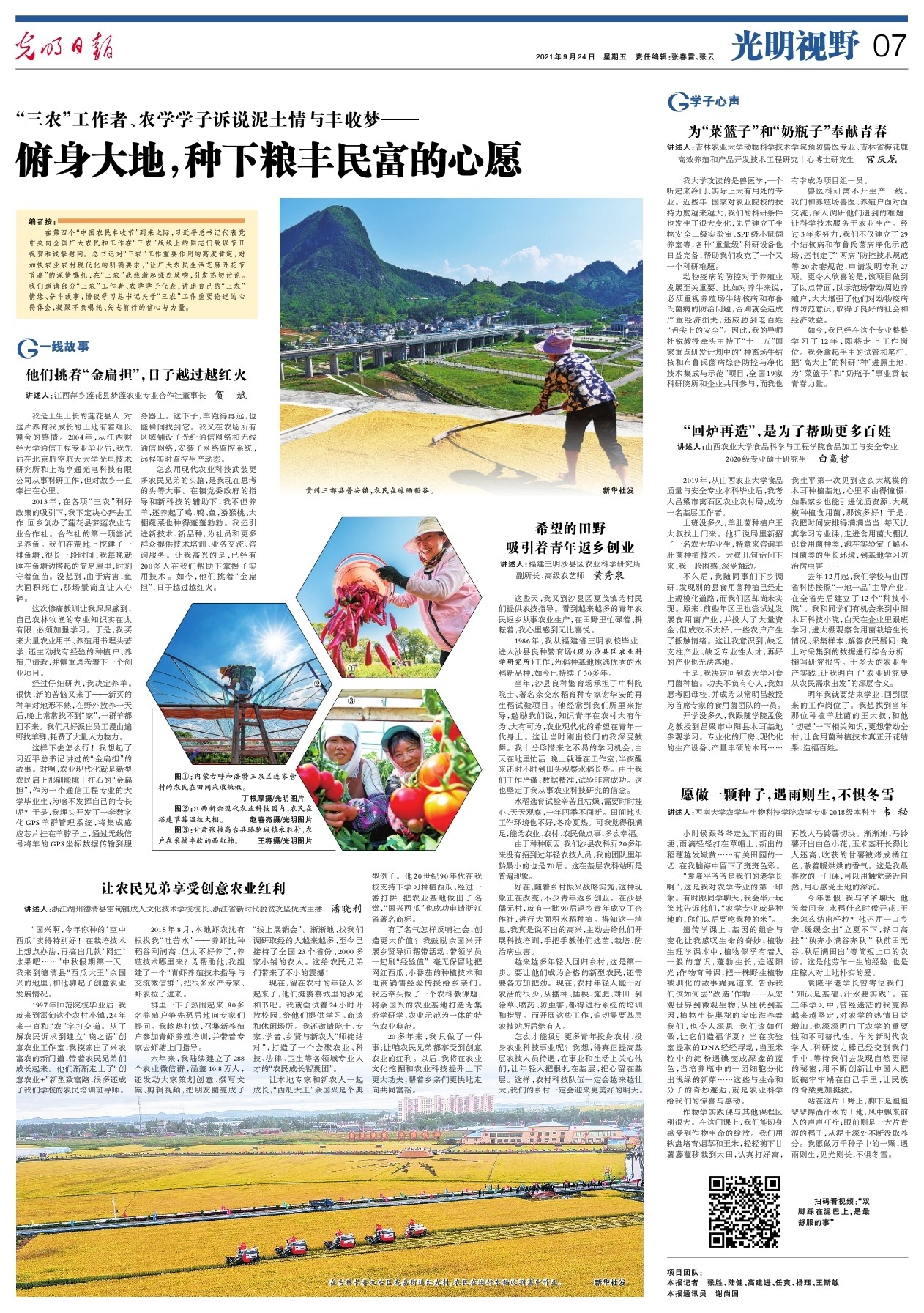 继全网连续报道学校丰收节深切缅怀袁隆平院士后,央视新闻微信公众号头条9月25日以《这张卡片背后,有个“油菜花女孩”》为题,光明日报9月24日7版以《愿做一颗种子,遇雨则生,不惧冬雪》为题,进一步走进袁隆平母院,挖掘学校青年学子背后的故事,深入报道青年学子秉承袁隆平毕生追求与理想,深耕农学专业,坚定理想信念,勇扛使命担当的主流强音。国家级媒体的持续发声,再次展现了学校农学专业矢志劝课农桑,坚持科技强农,着力培养农业现代化领跑者,奋力加快农业农村现代化建设的社会担当。以下为报道全文: