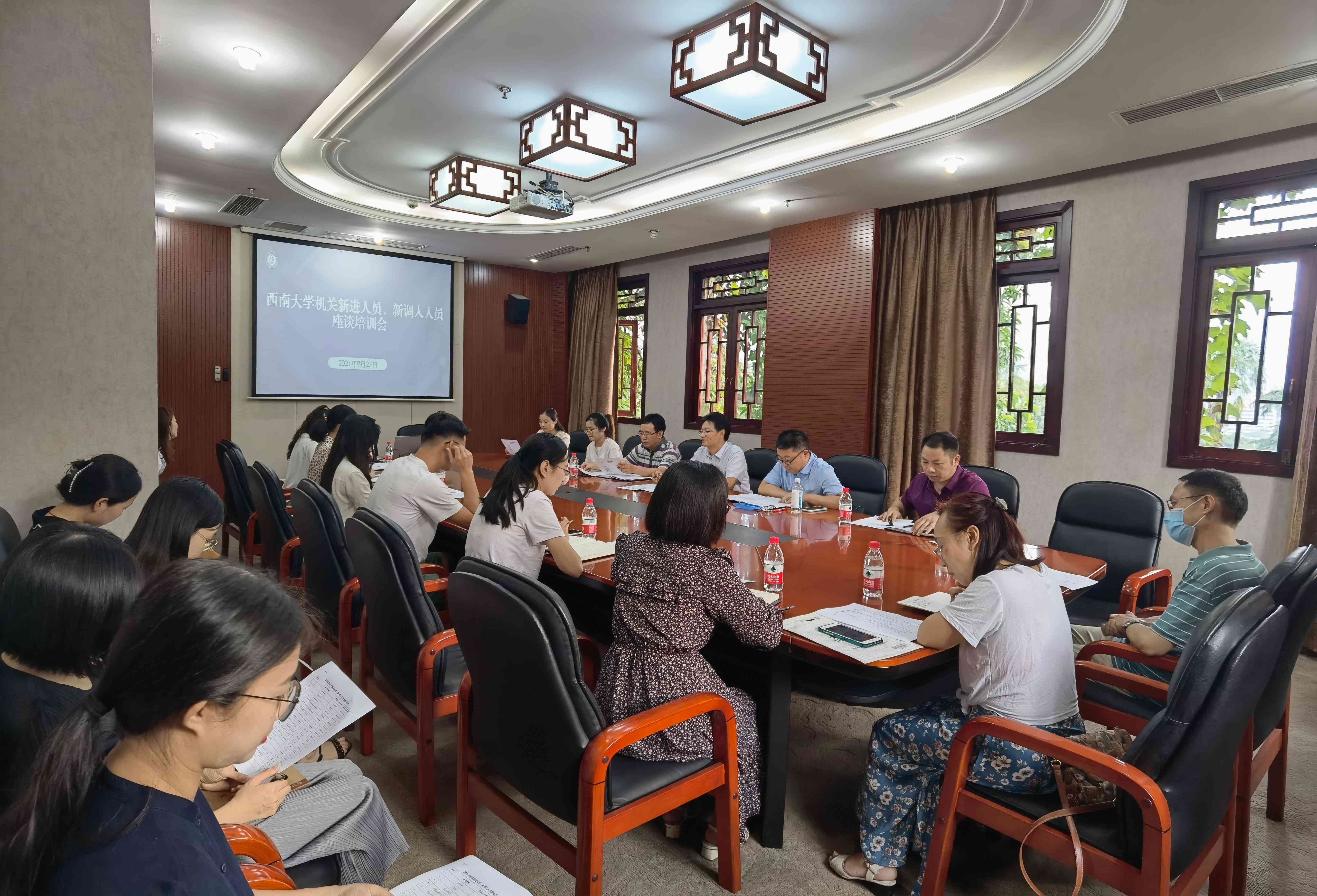 新起点,新使命,新征程。9月27日下午,机关党委践行一线规则,落实“我为师生办实事”,在行署楼A栋一会议室召开2021年新进人员、新调入人员座谈培训会,机关新进6名同志以及14名新调入同志参加本次会议。