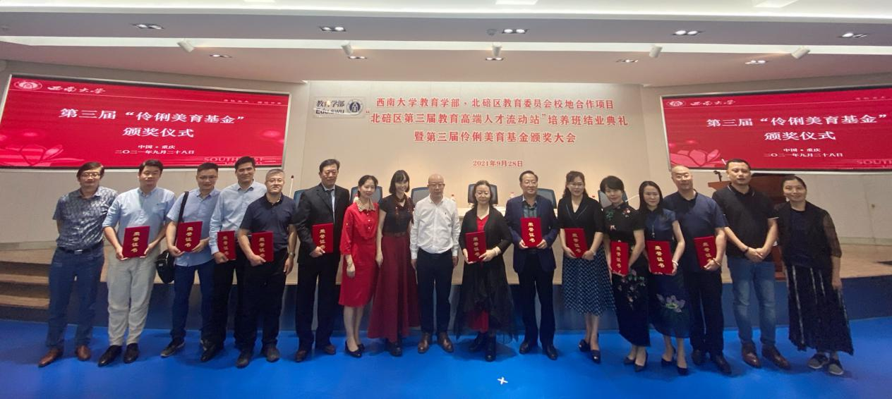 9月28日,第三届“伶俐美育基金”颁奖仪式在教育学部举行。本次基金颁奖由重庆beat365英国官网教育基金会、学校教育学部主办,活动分为颁奖仪式与获奖者公益论坛两个部分。
