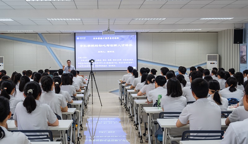 张斌在主持总结中勉励同学们坚守含弘学院的办学初心,立足祖国需要,树立高远目标,不断砥砺品行,脚踏实地,刻苦求学,以努力成为拔尖创新人才而不断奋斗。
