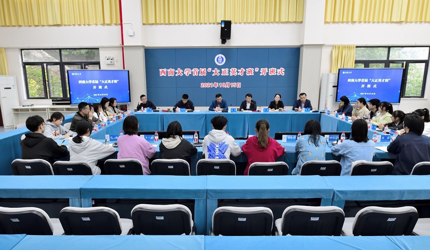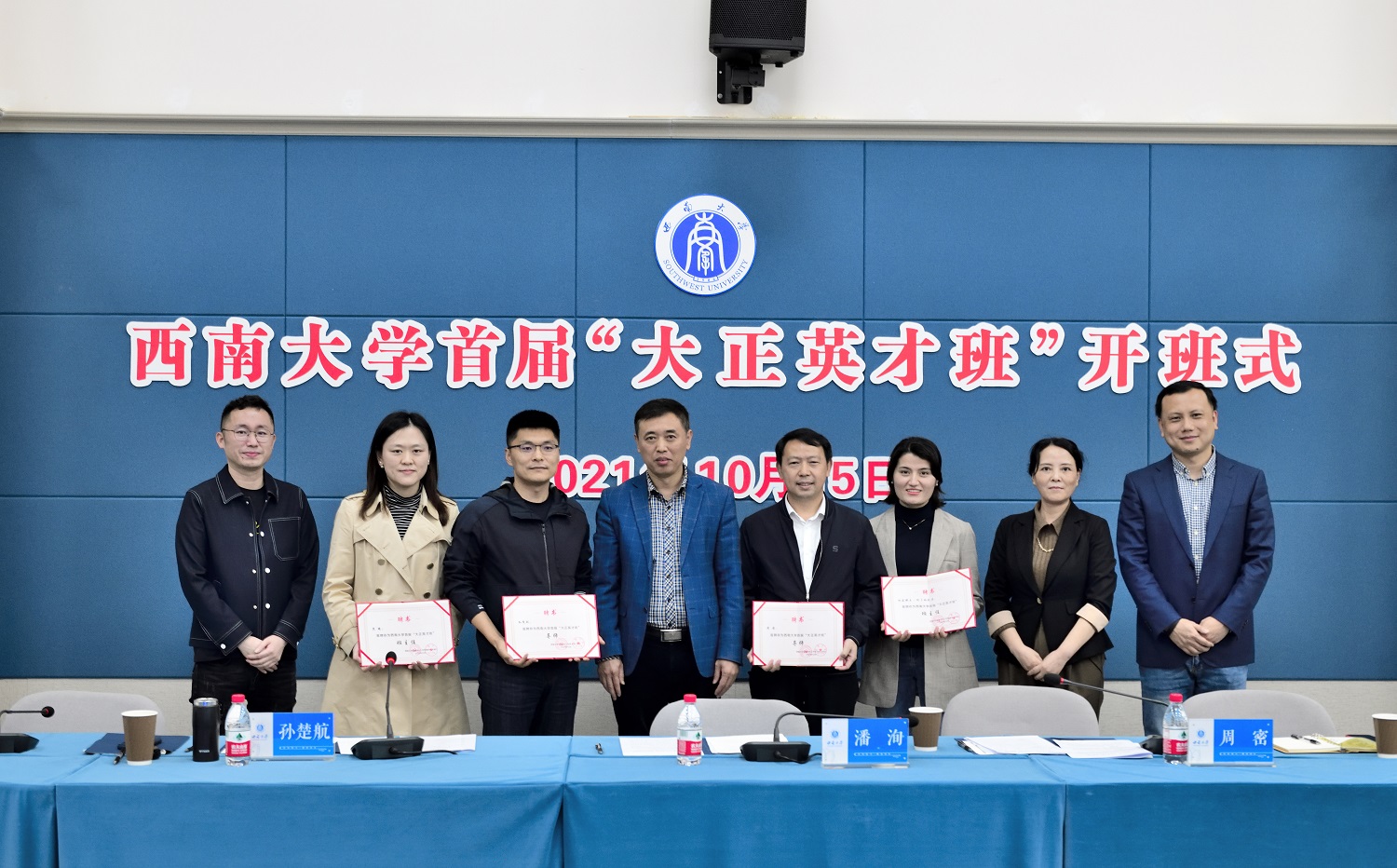 10月15日,学校首届“大正英才班”开班式在第二学生活动中心420室举行。学校党委副书记潘洵,重庆市大正仪表股份有限公司董事长周密,党委学生工作部、对外联络办公室等部门负责人出席仪式。
