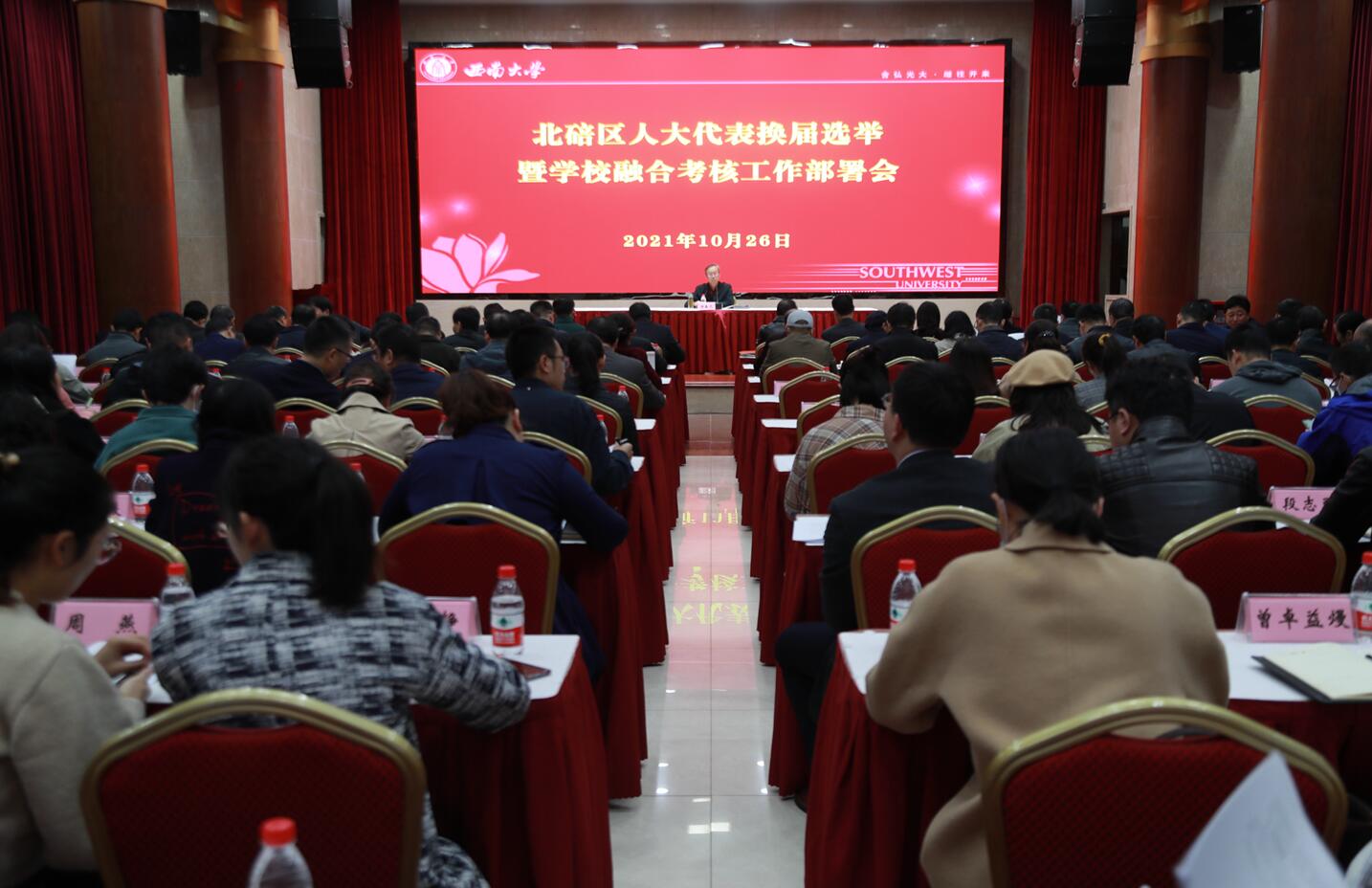 10月26日,学校在东方红会议厅和师元楼先后召开北碚区人大代表换届选举工作部署会及培训会。