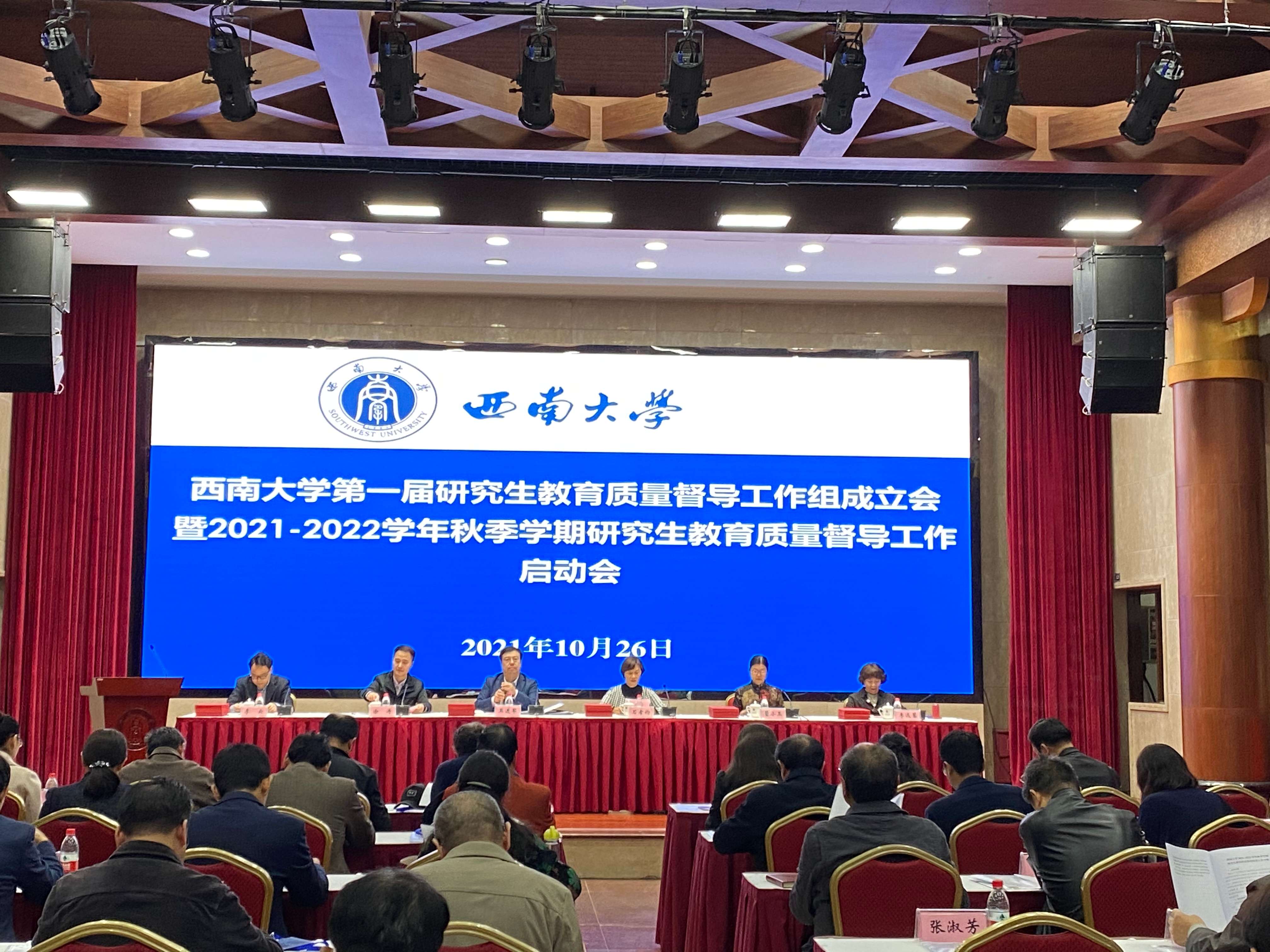 10月26日下午,学校第一届研究生教育质量督导工作组成立会暨2021-2022学年秋季学期研究生教育质量督导工作启动会在beat365英国官网东方红会议厅召开。会议旨在贯彻全国研究生教育会议精神,加强研究生培养质量的监督管理,健全研究生教育质量监督体系,助力研究生教育高质量发展,走上教指委领航、督导组护航的高质量发展道路,在“督教”“督管”“督学”与“导教”“导管”“导学”方面切实发挥作用。