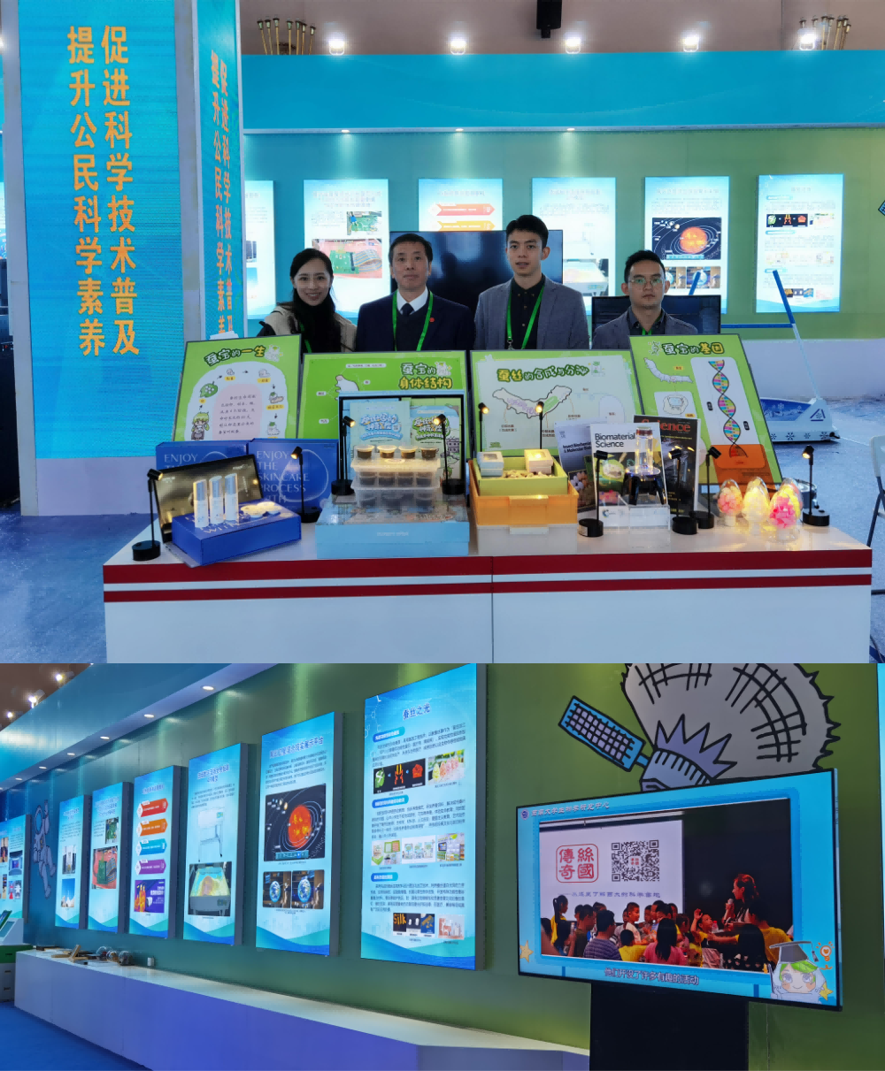 国家“十三五”科技创新成就展于10月21日至27日在北京展览馆举行。经学校科协组织推荐,生物学研究中心“蚕丝之光”代表重庆市被推选至成就展科普展区,作为该展区重点展示内容,展示学校生物学研究中心关于蚕桑产业技术、蚕丝新材料研究,以及创新性劳动教育等科技成果。