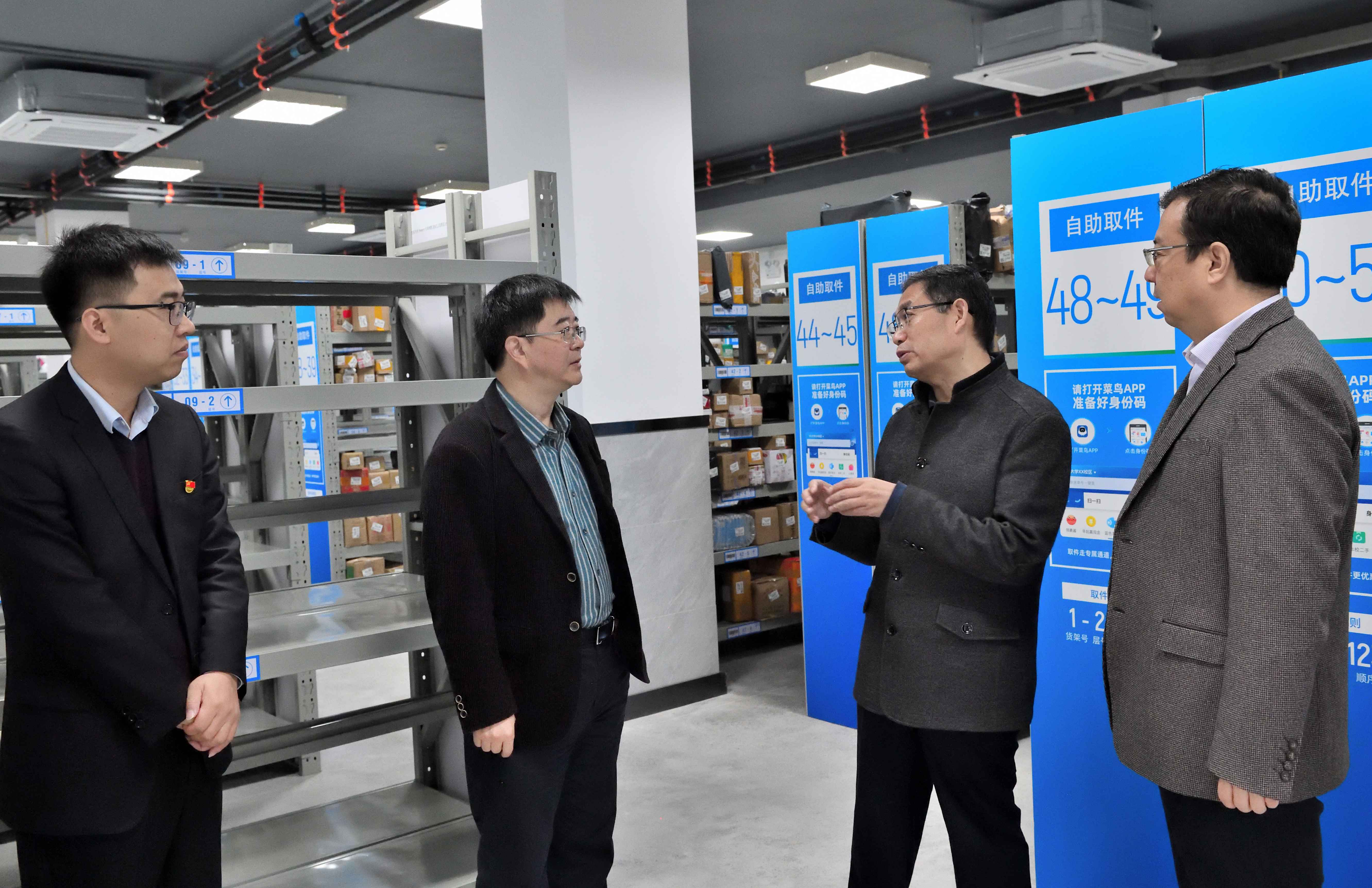 11月1日上午,学校党委书记李旭锋到梅园、竹园、橘园快递服务站进行现场检查,对校园智慧物流服务站的建设、运营效果给予充分肯定。副校长王进军、党政办公室、后勤集团有关负责人陪同。